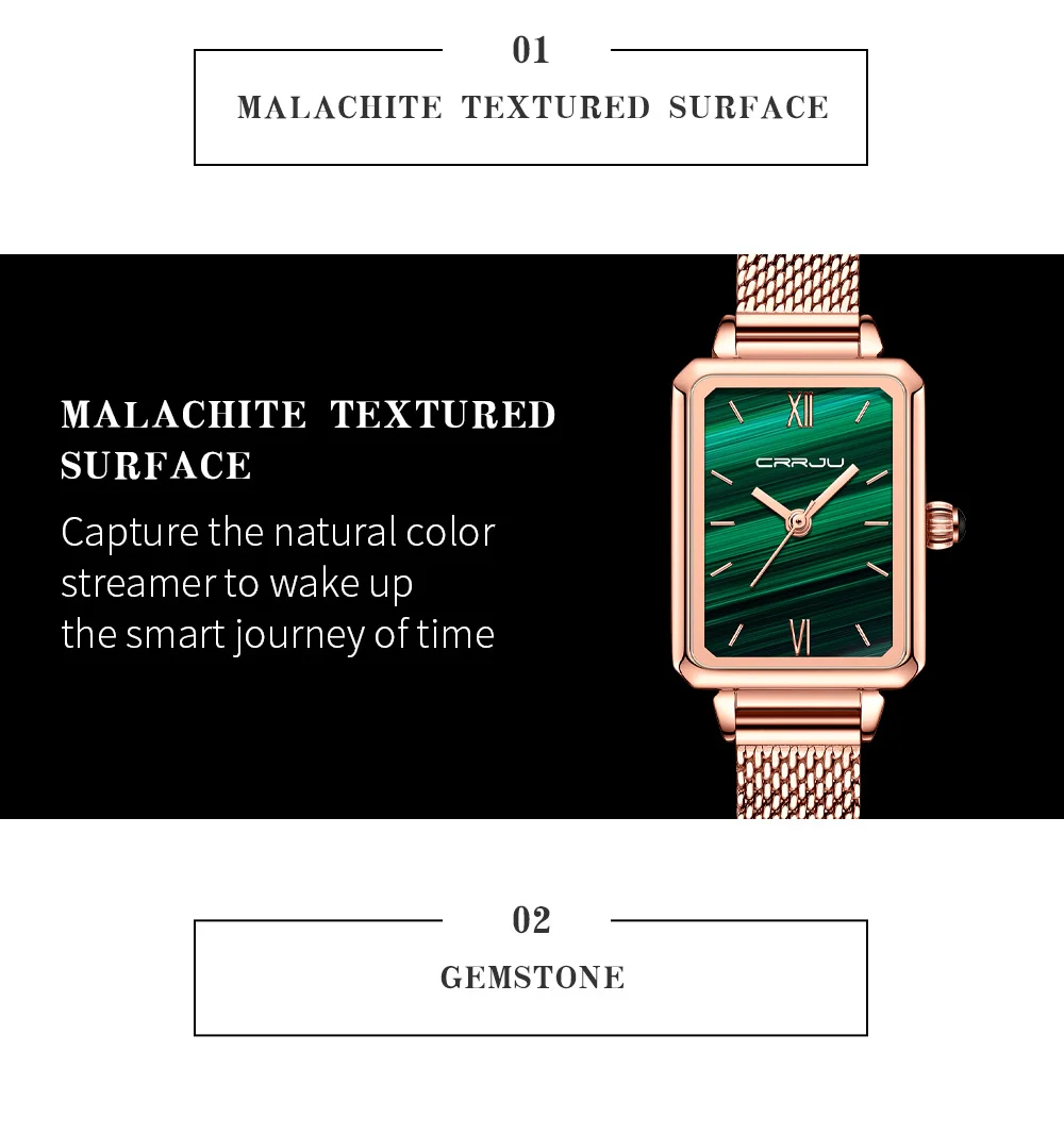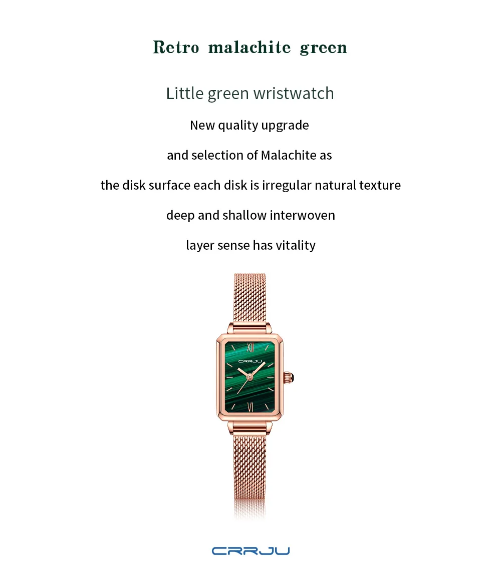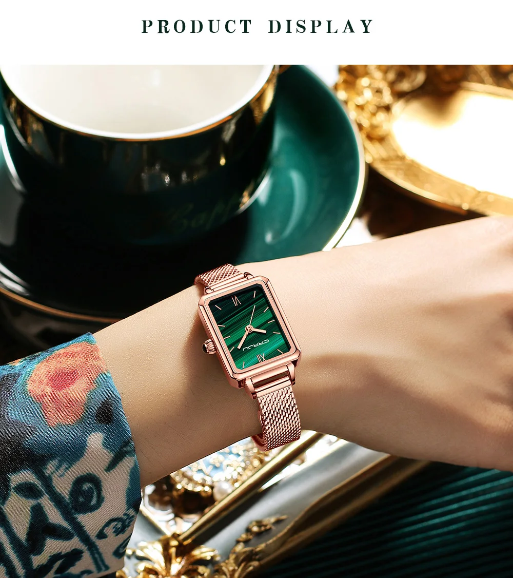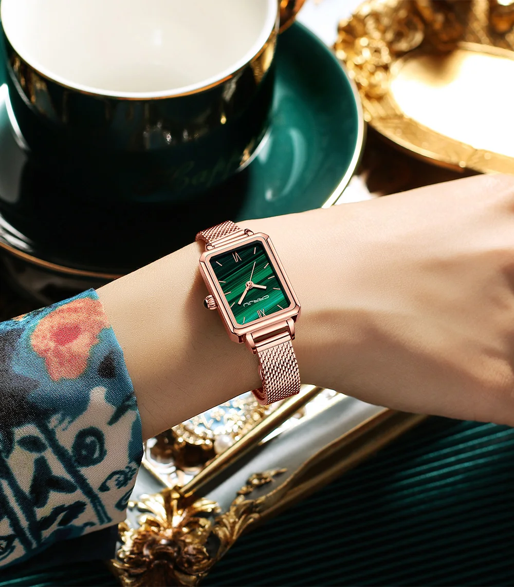 Women’s Green Malachite Dial Quartz Watch – Stainless Steel & Waterproof