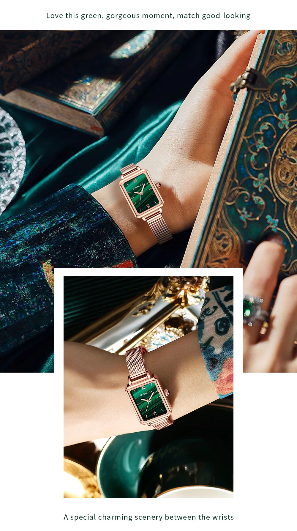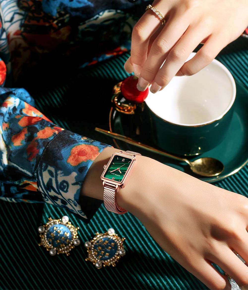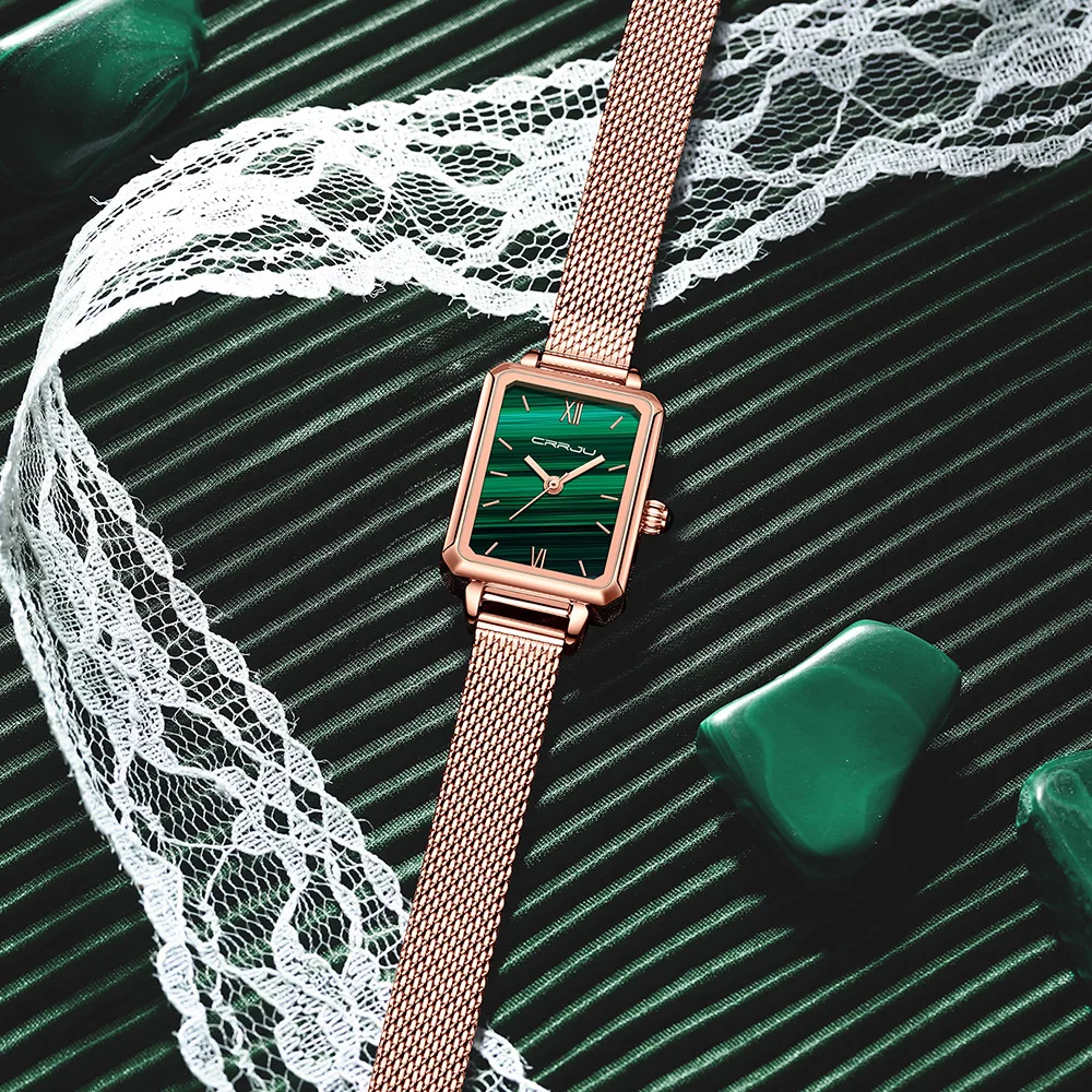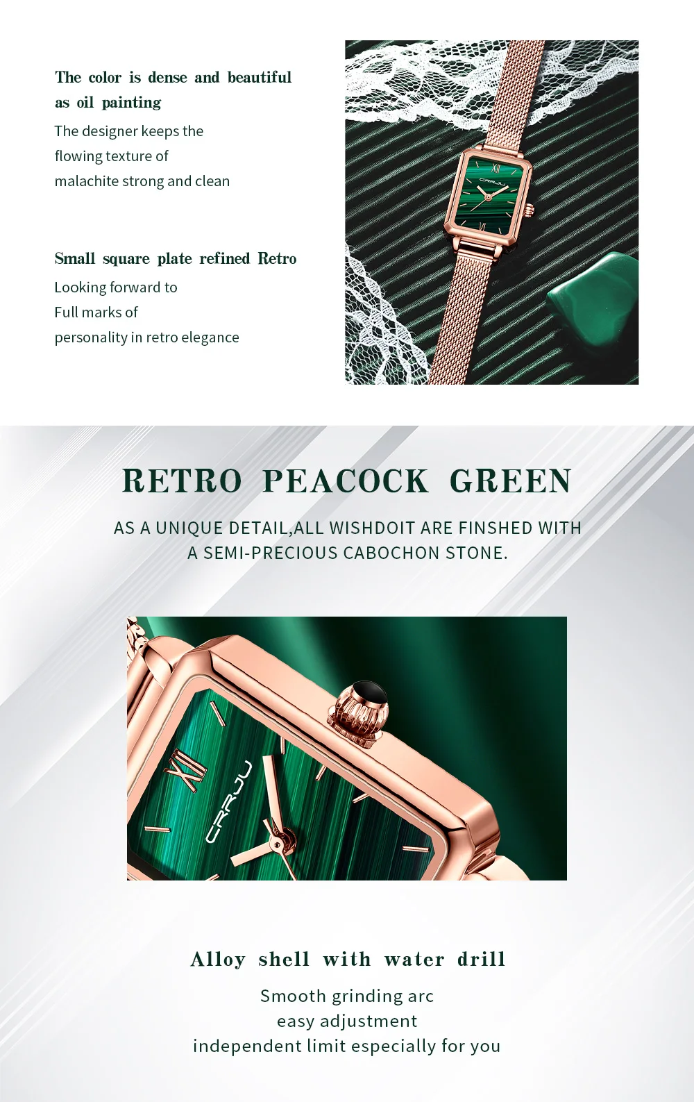 Women’s Green Malachite Dial Quartz Watch – Stainless Steel & Waterproof