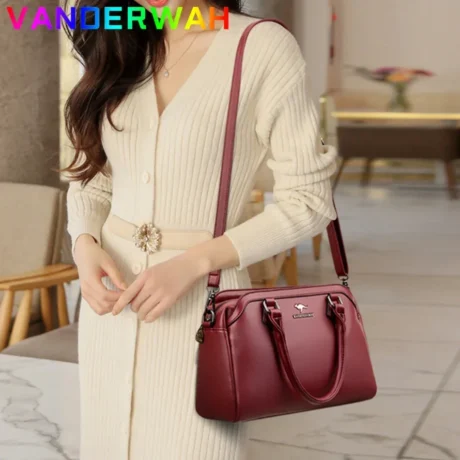 Women’s Luxury 3-Layer Leather Handbag – Designer Crossbody & Shoulder Bag