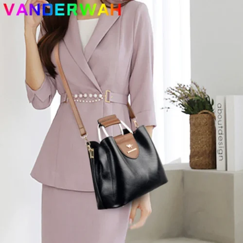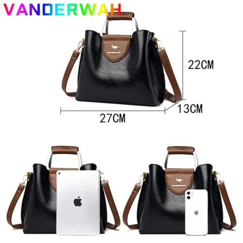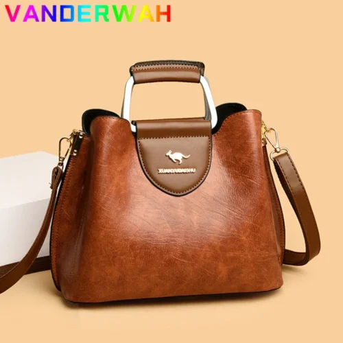 Women’s Luxury 3-Layer Oil Skin Leather Tote Bag – Designer Shoulder & Crossbody Handbag