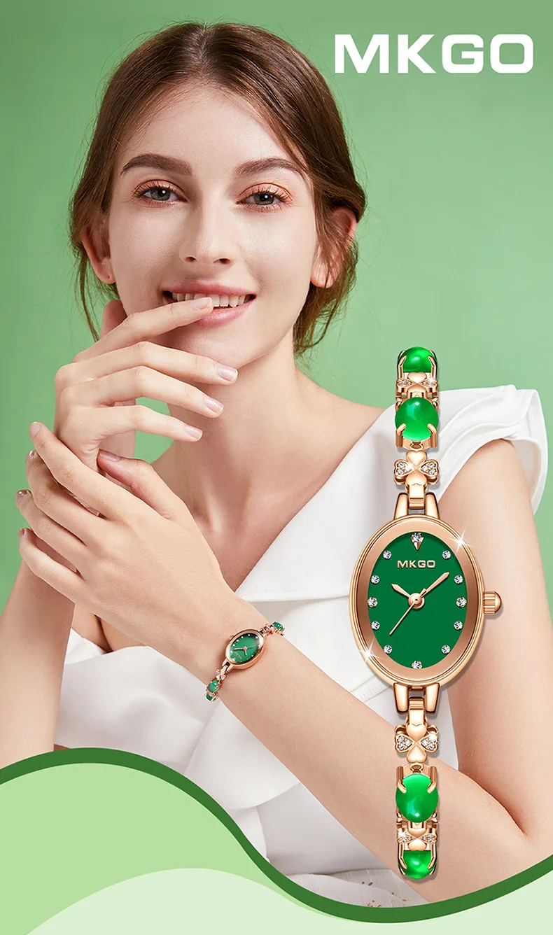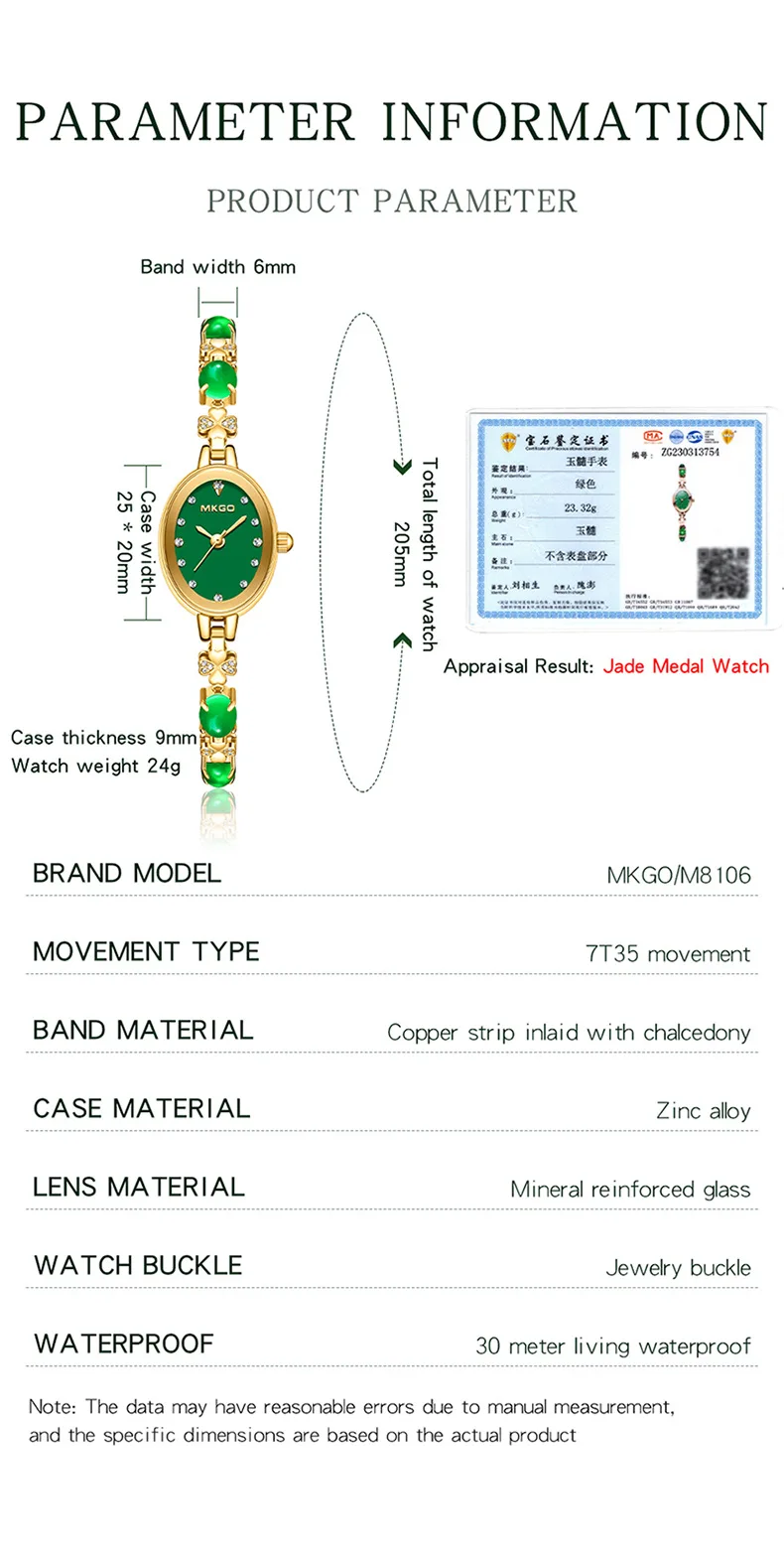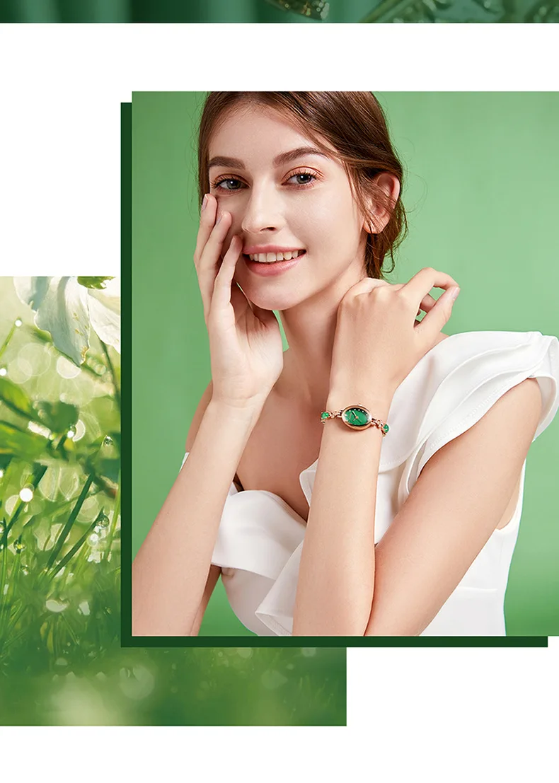 Women’s Luxury Crystal Jade Bracelet Watch – Peacock Green Waterproof Jewelry Design