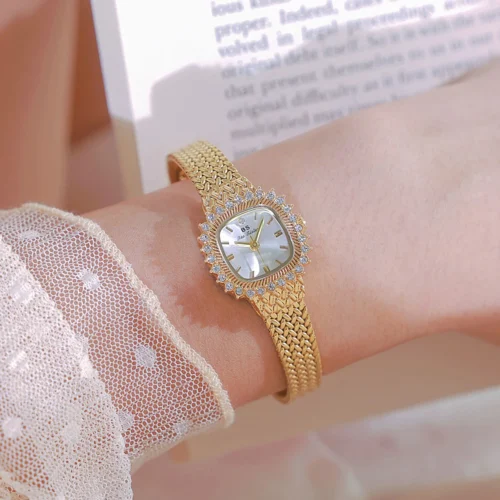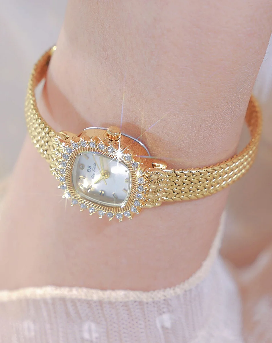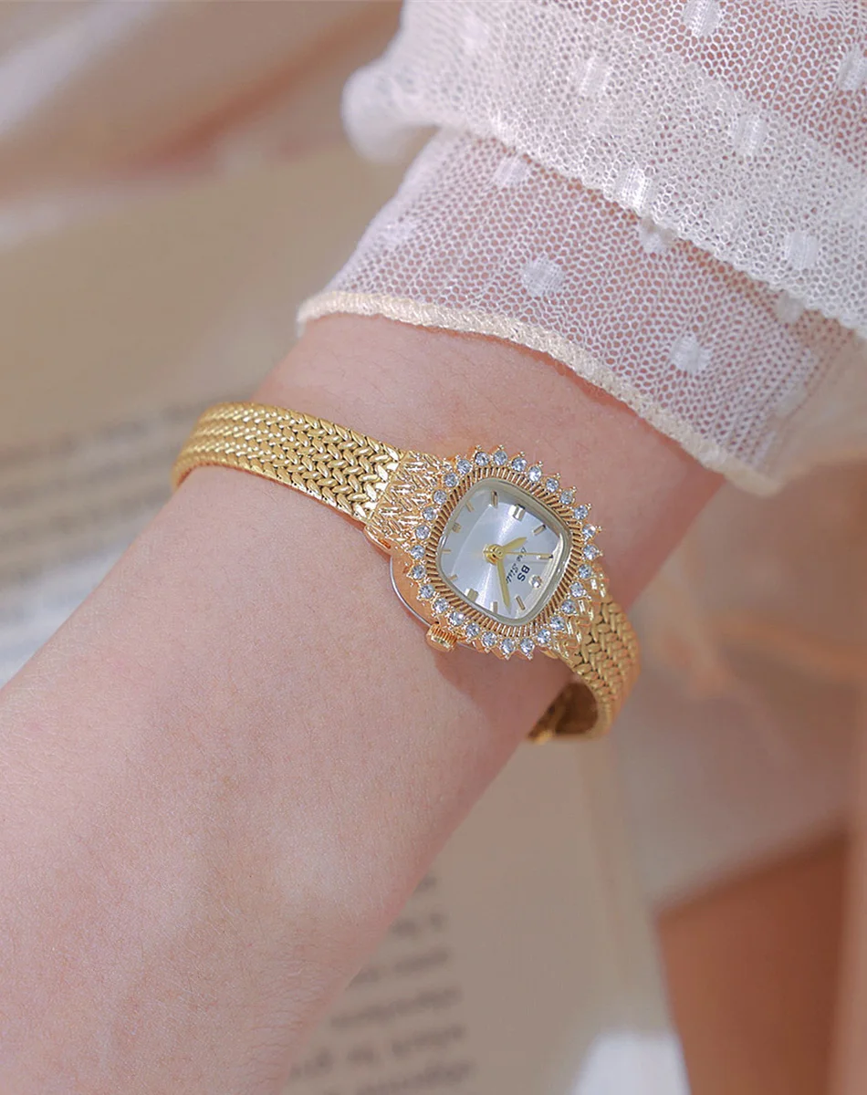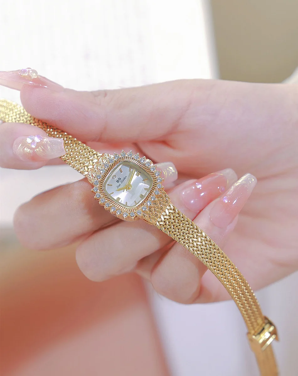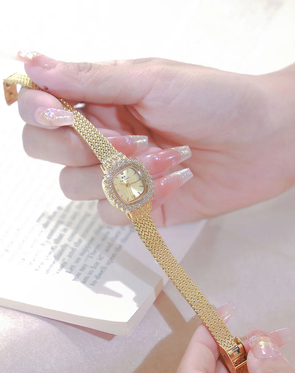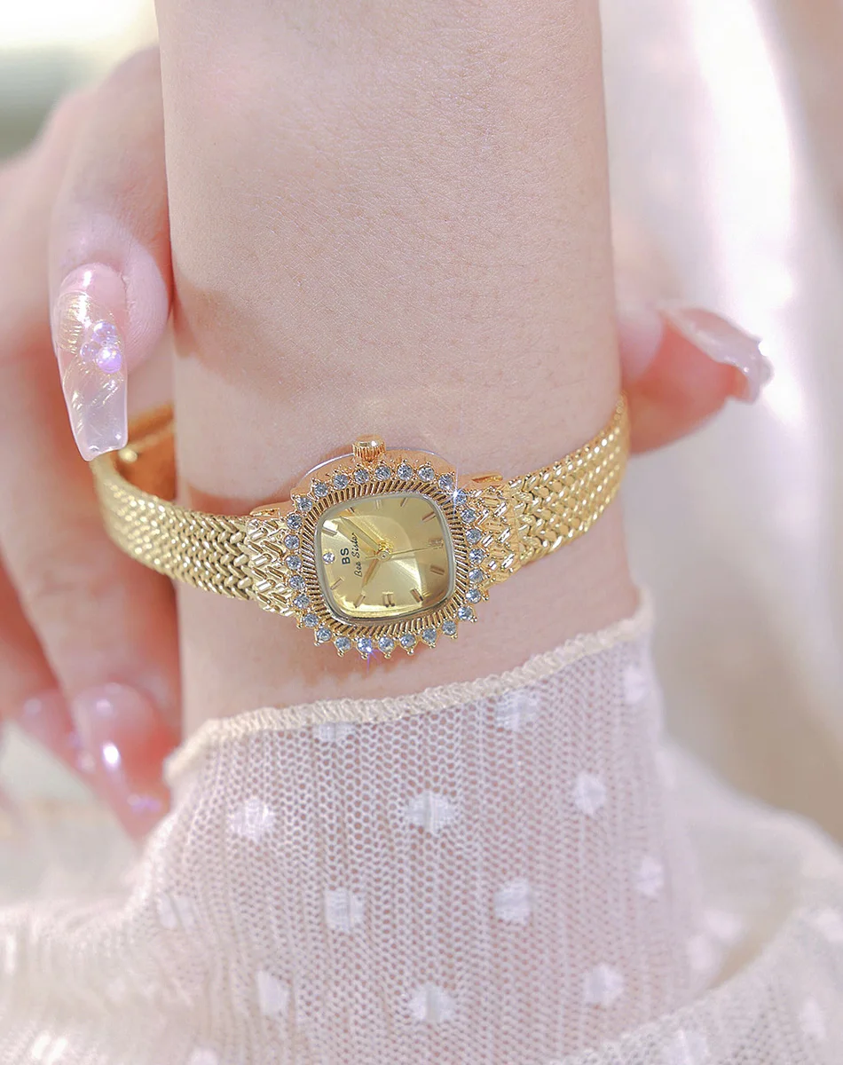 Women’s Luxury Diamond Quartz Watch – Elegant Gold Square Dial Dress Style