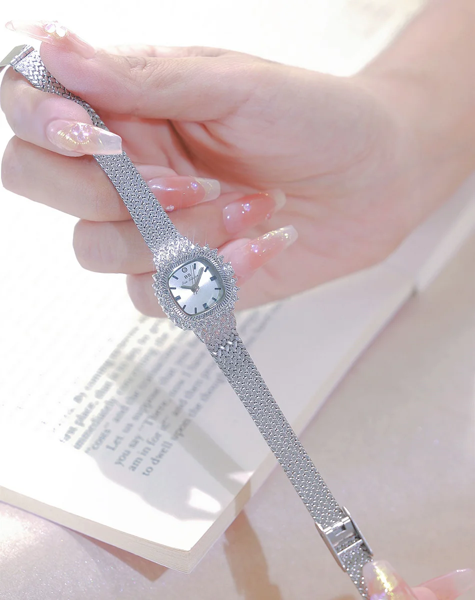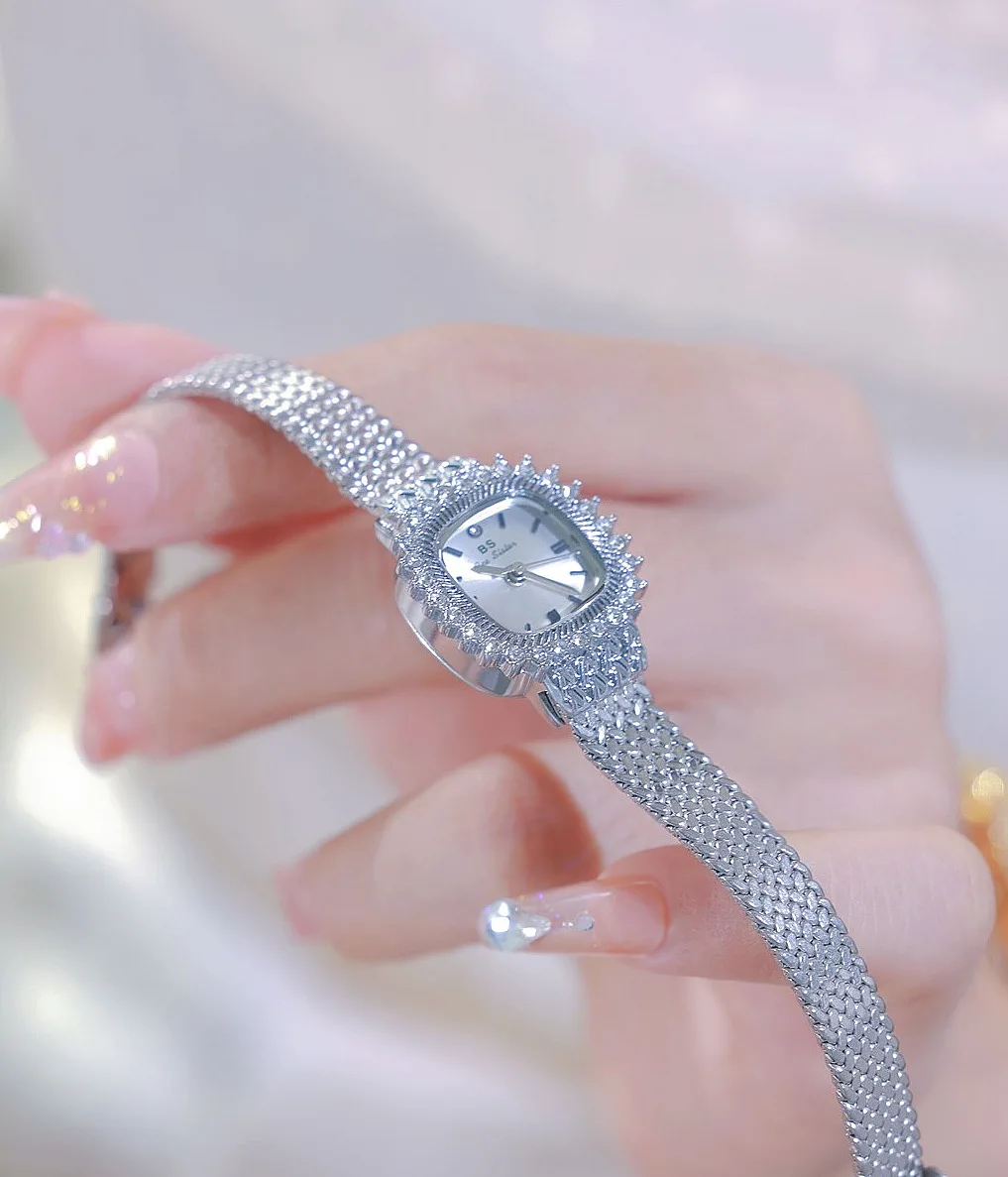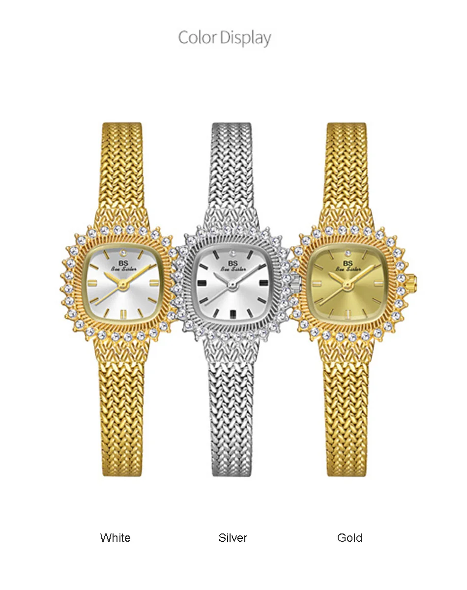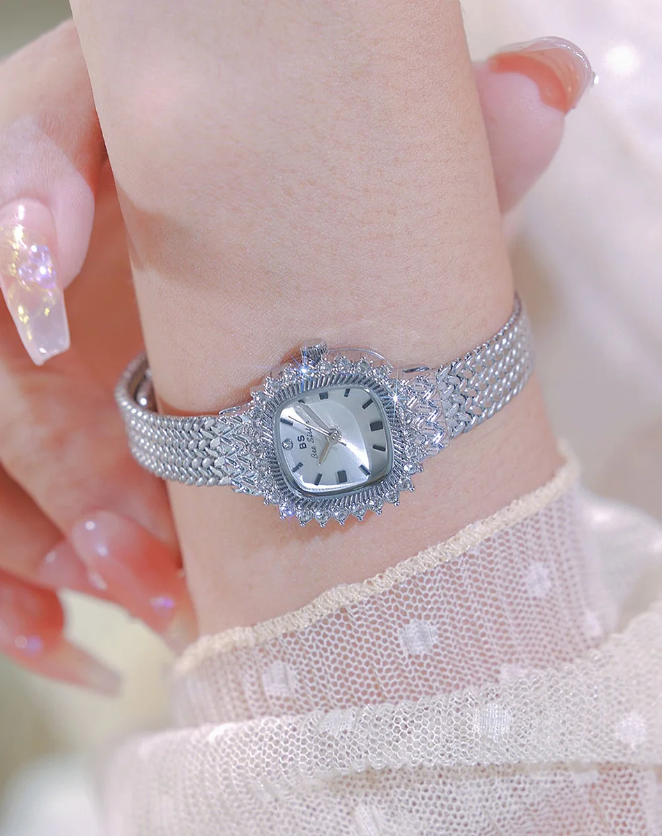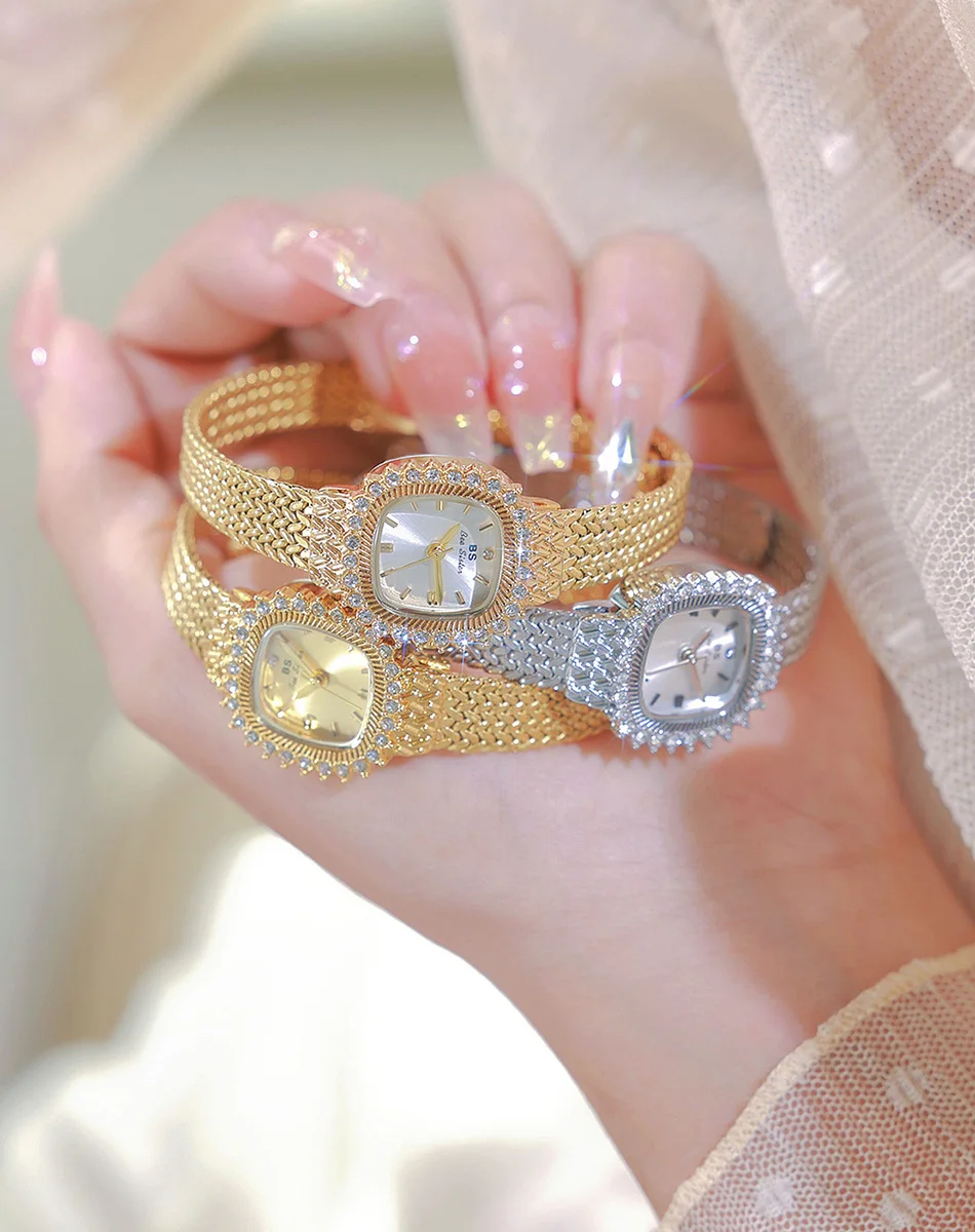 Women’s Luxury Diamond Quartz Watch – Elegant Gold Square Dial Dress Style