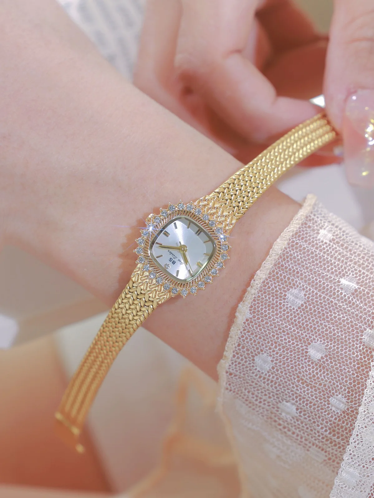Fashion Watches For Women Elegant Luxury Diamond Square Dial Women’s Watch Golden Small Clock Dress Female Quartz Wristwatch