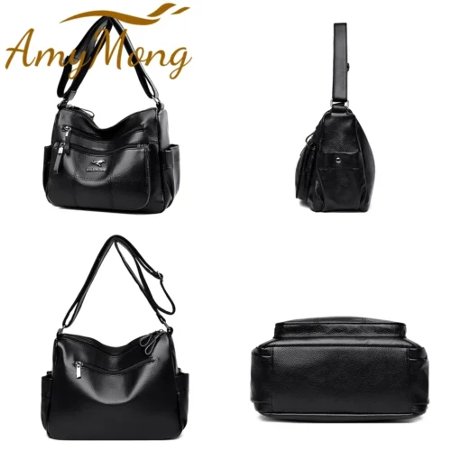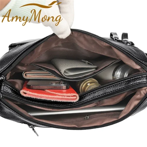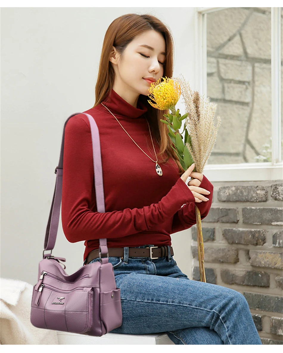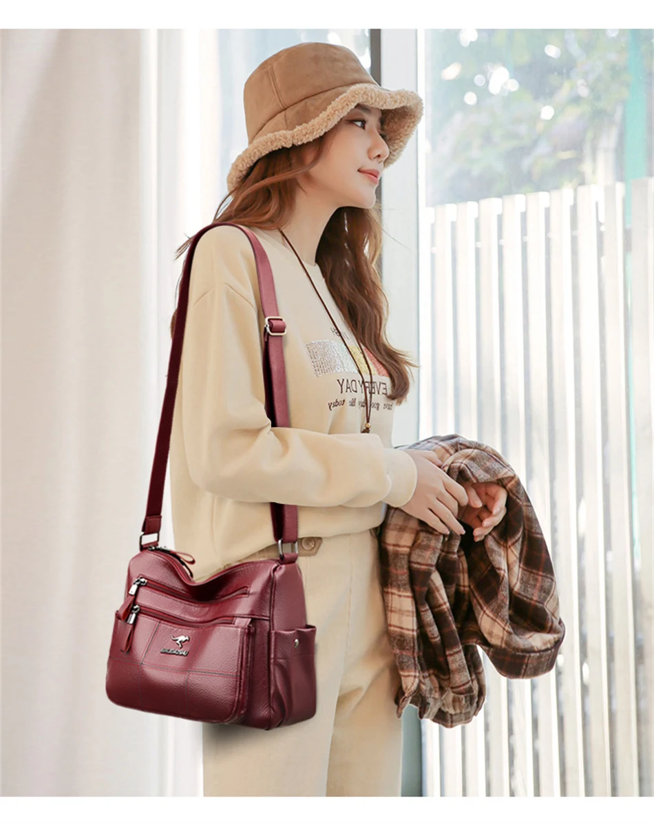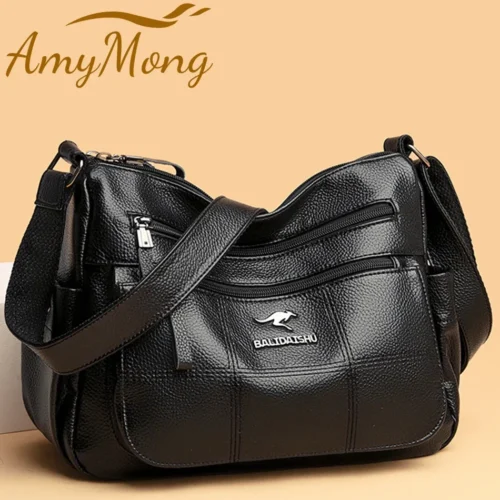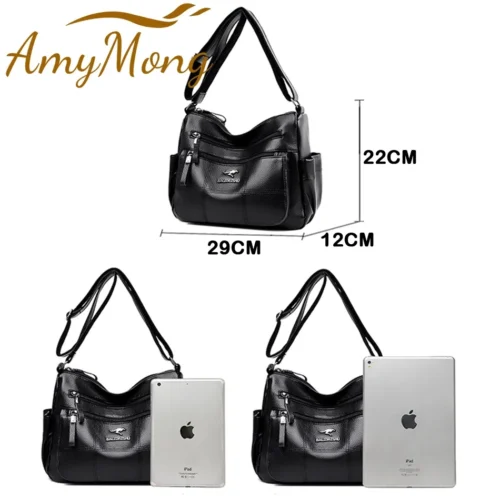 Women’s Luxury Leather Designer Handbag – Soft Shoulder & Crossbody Messenger Bag with Multiple Pockets
