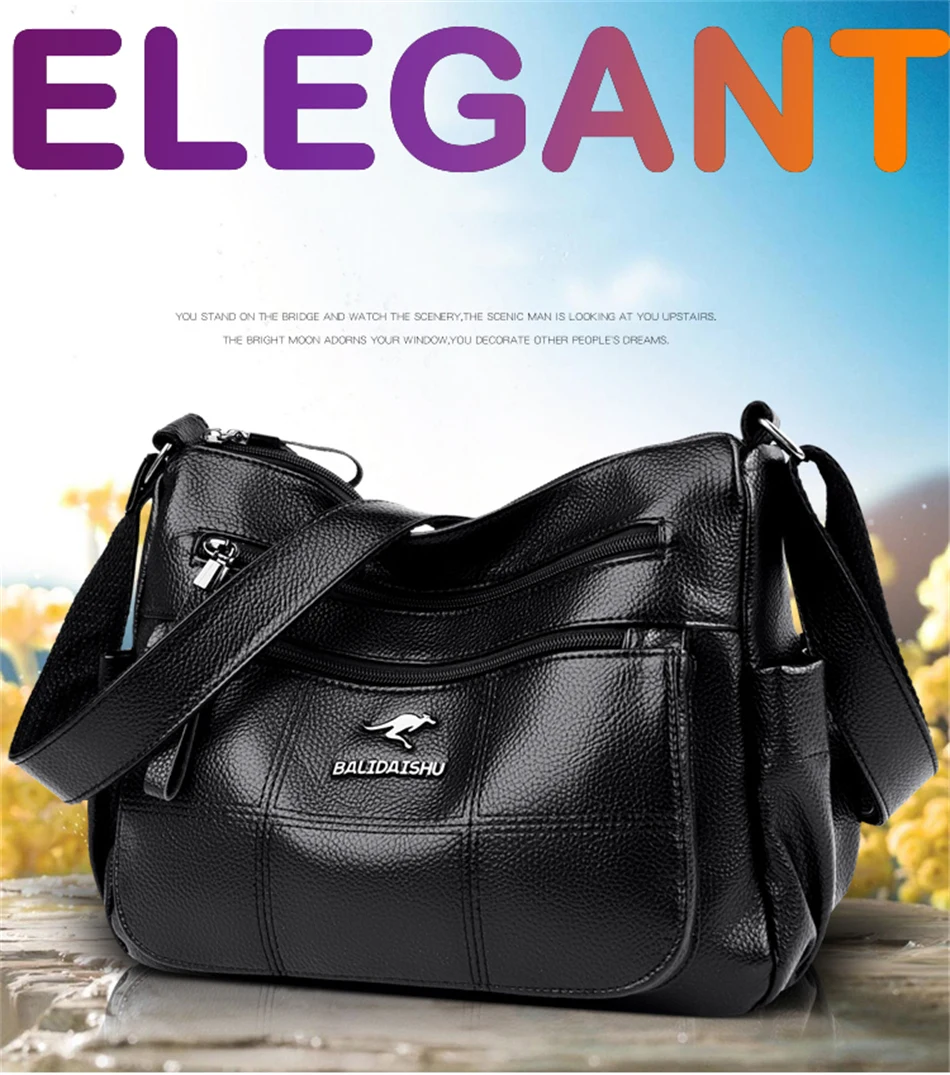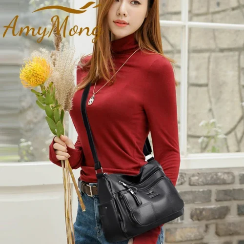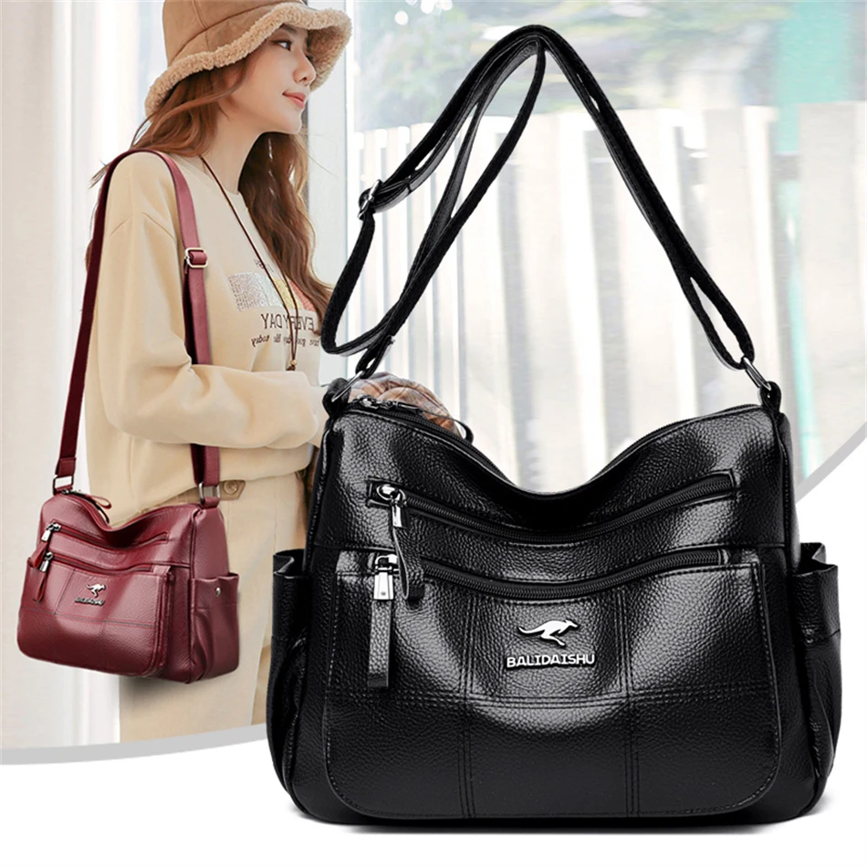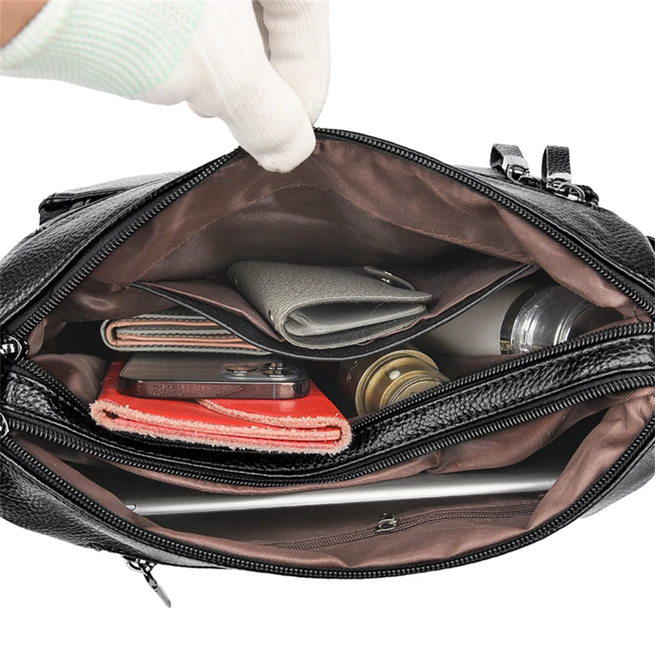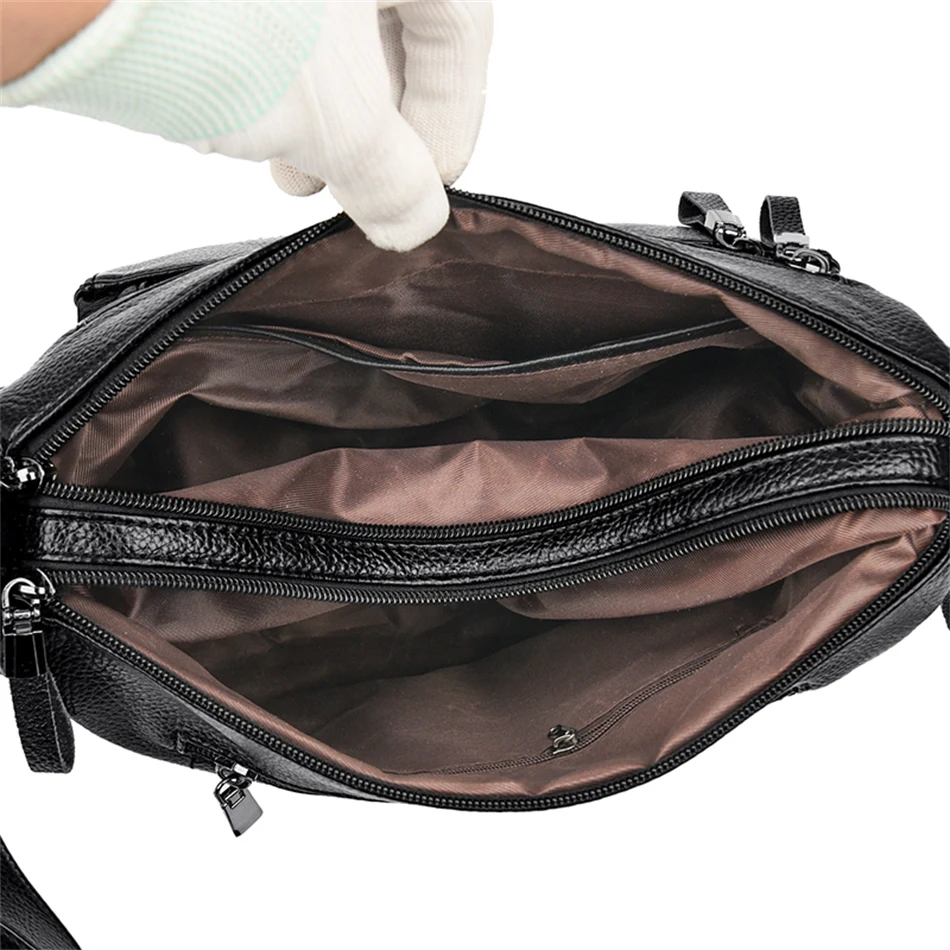 Women’s Luxury Leather Designer Handbag – Soft Shoulder & Crossbody Messenger Bag with Multiple Pockets