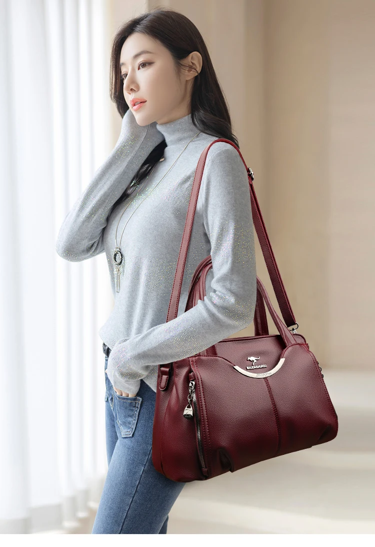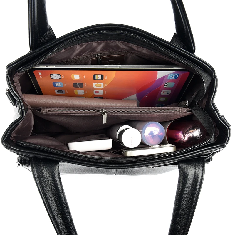 Women’s Luxury Multi-Pocket PU Leather Shoulder Bag – Designer Tote Handbag