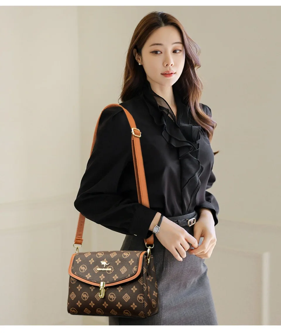 Women’s Luxury PU Leather Flower Crossbody & Tote Bag – Small Shoulder Handbag