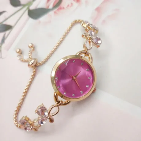 Women’s Rhinestone Chain Rectangular Quartz Watch with Colorful Dial