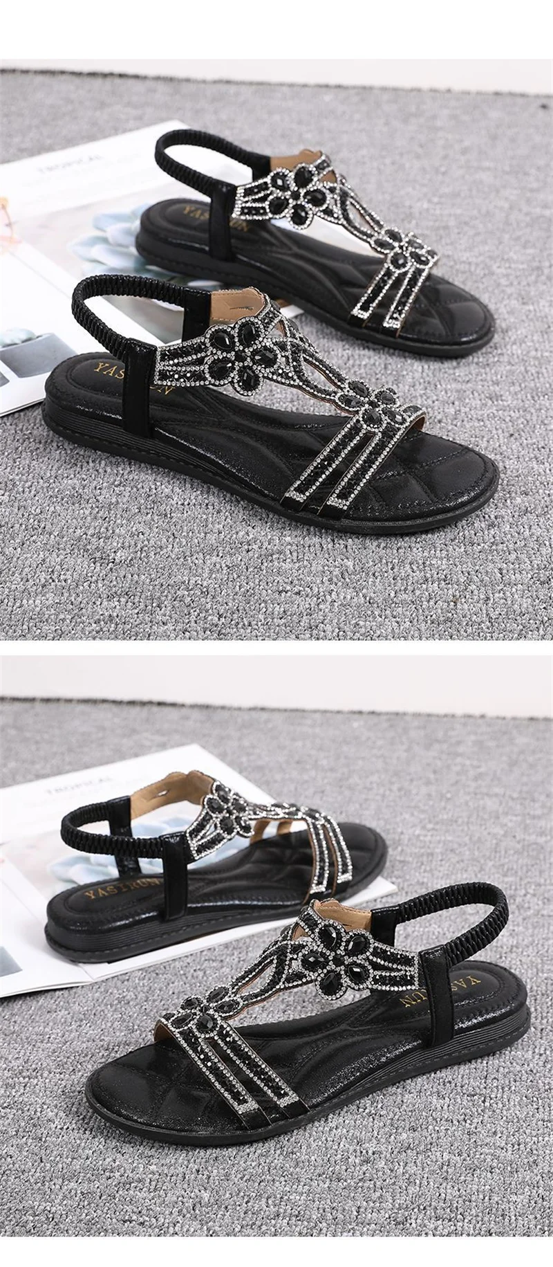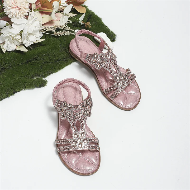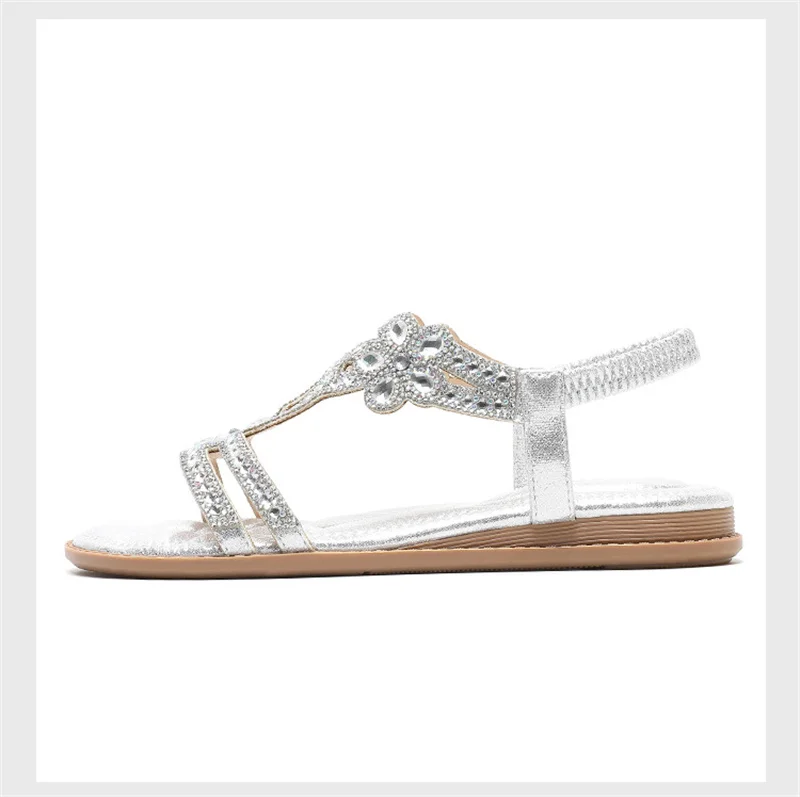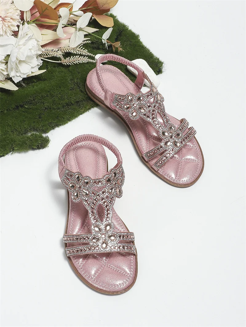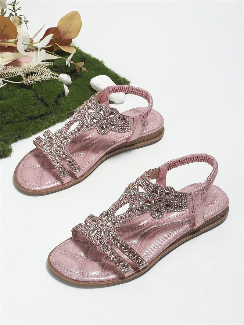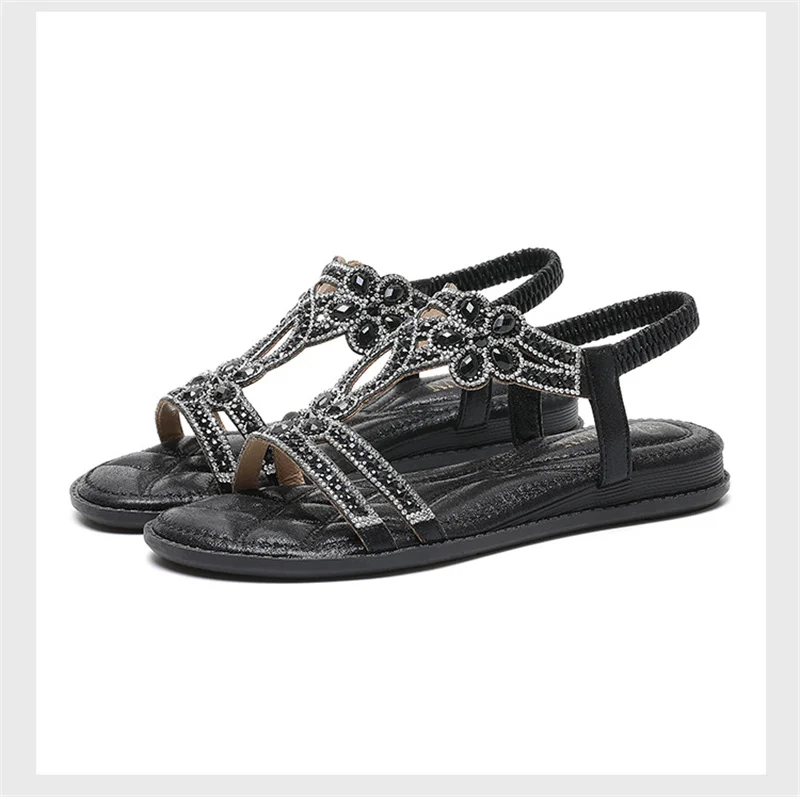Plus Size Women’s Rhinestone Sandals – Elastic Band Open Toe Beach Shoes