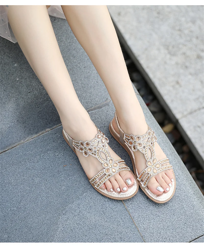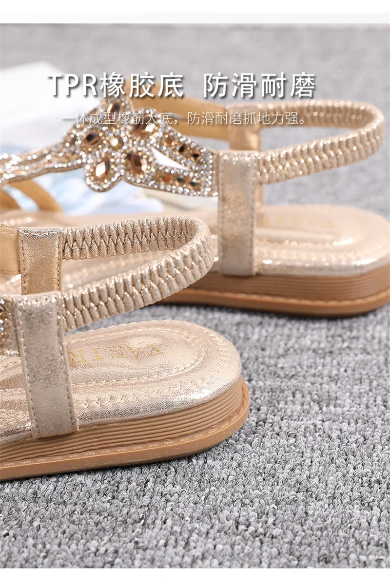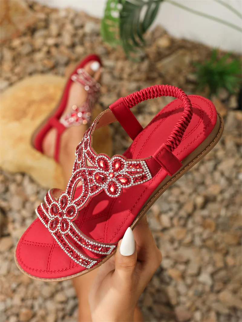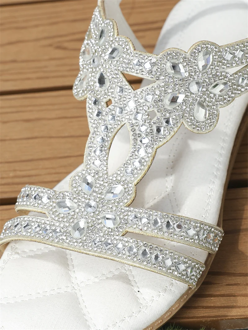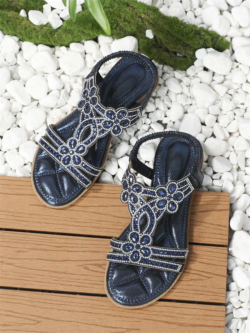 Plus Size Women’s Rhinestone Sandals – Elastic Band Open Toe Beach Shoes