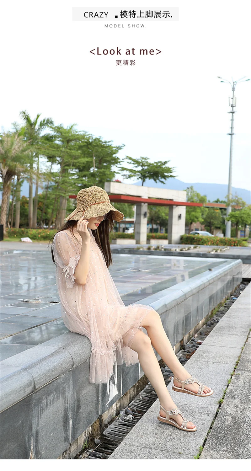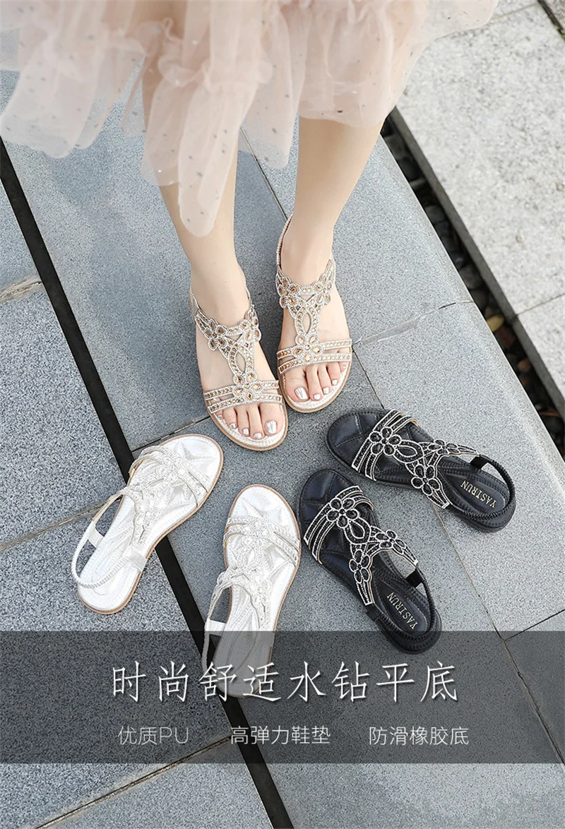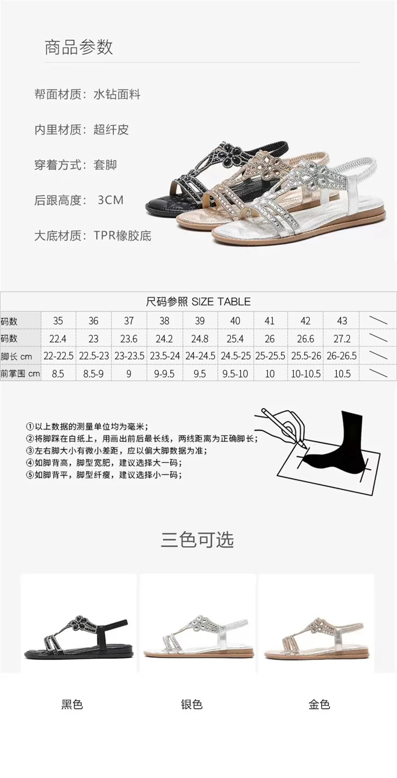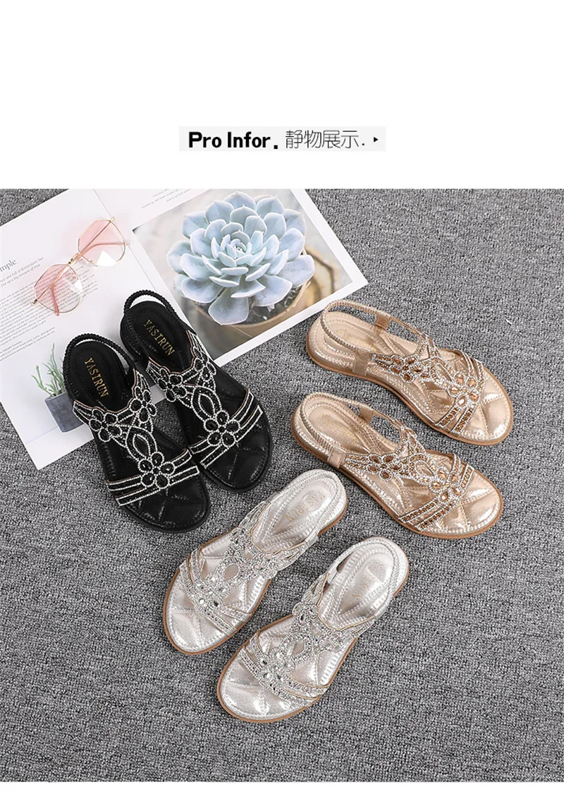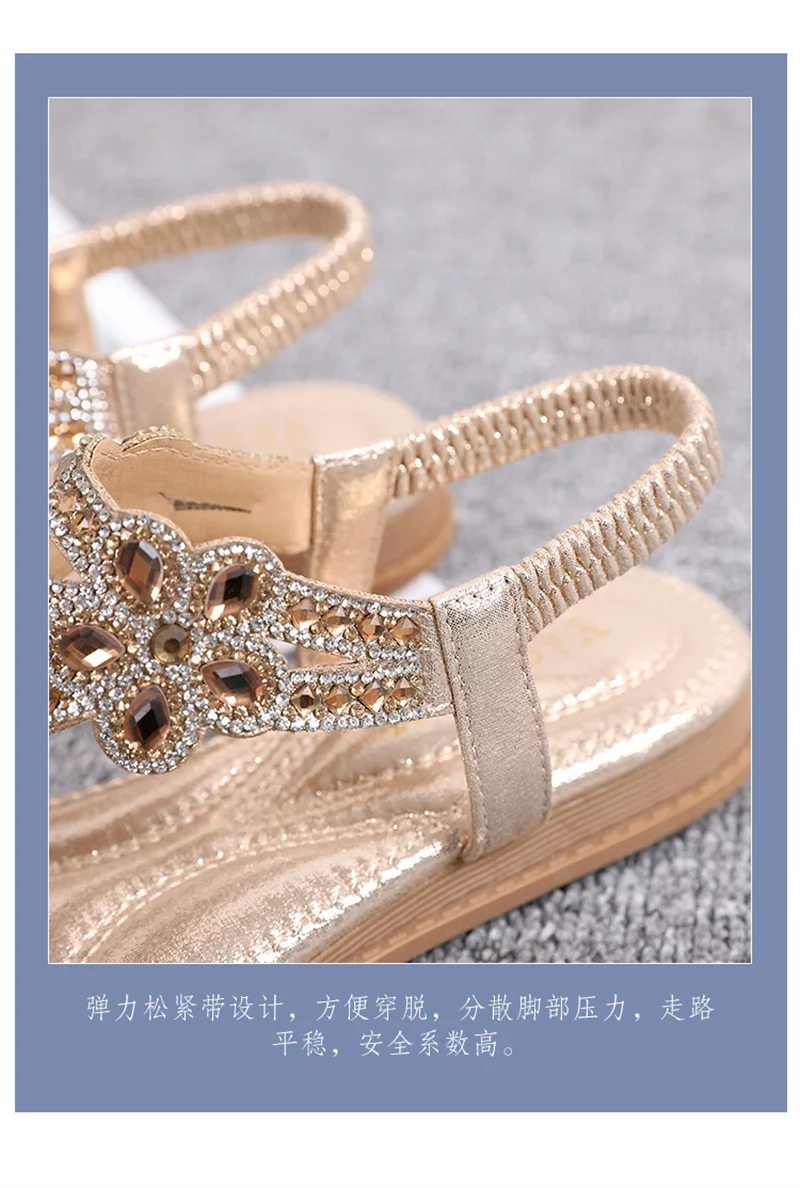 Plus Size Women’s Rhinestone Sandals – Elastic Band Open Toe Beach Shoes