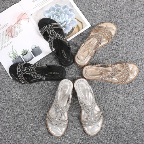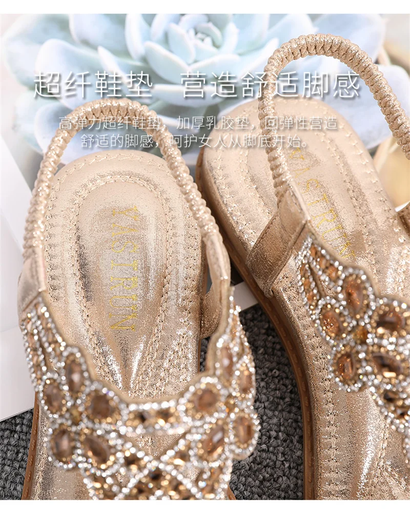 Women’s Wedge Gladiator Sandals – Bohemia Crystal Beach Flip Flops