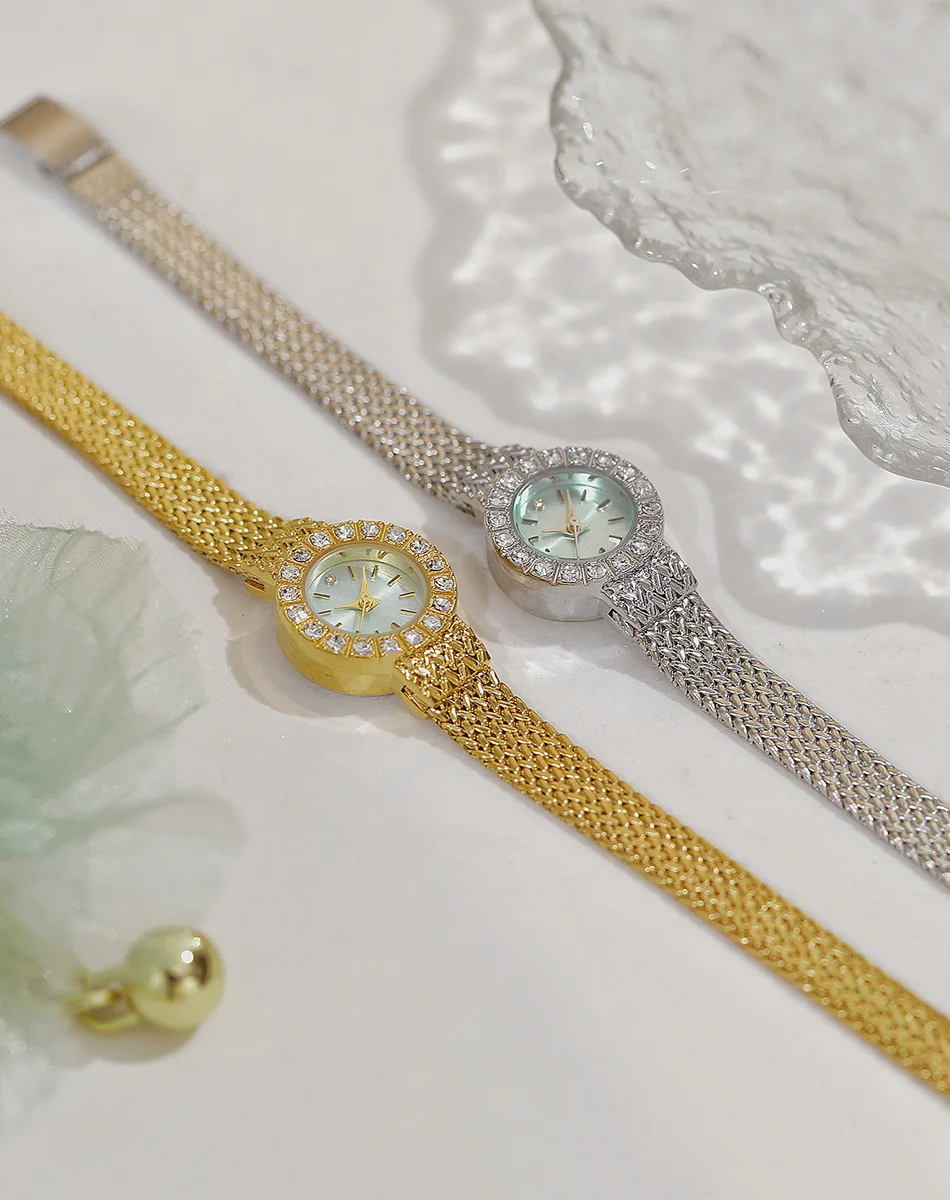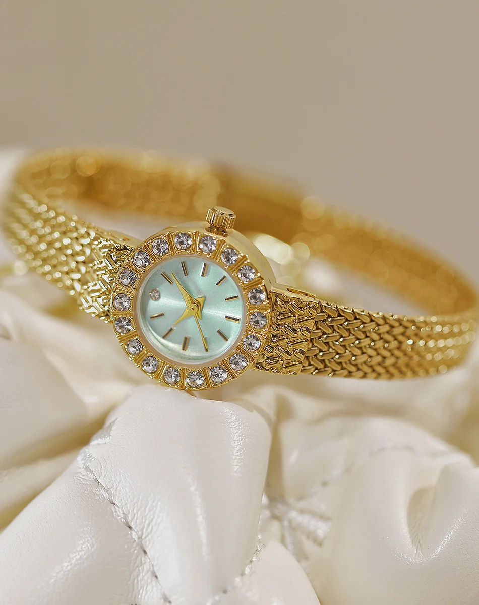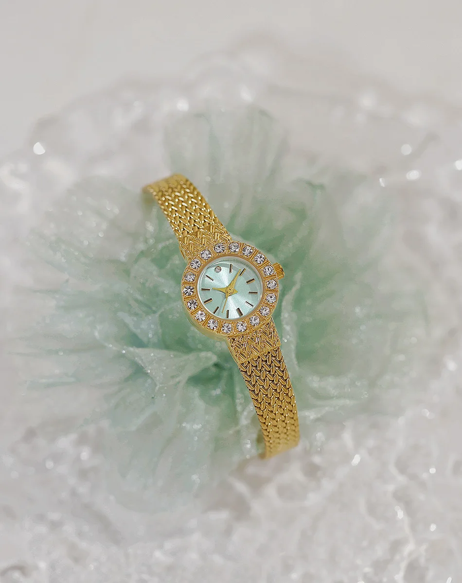 Women’s Vintage Green Diamond Dial Quartz Bracelet Watch