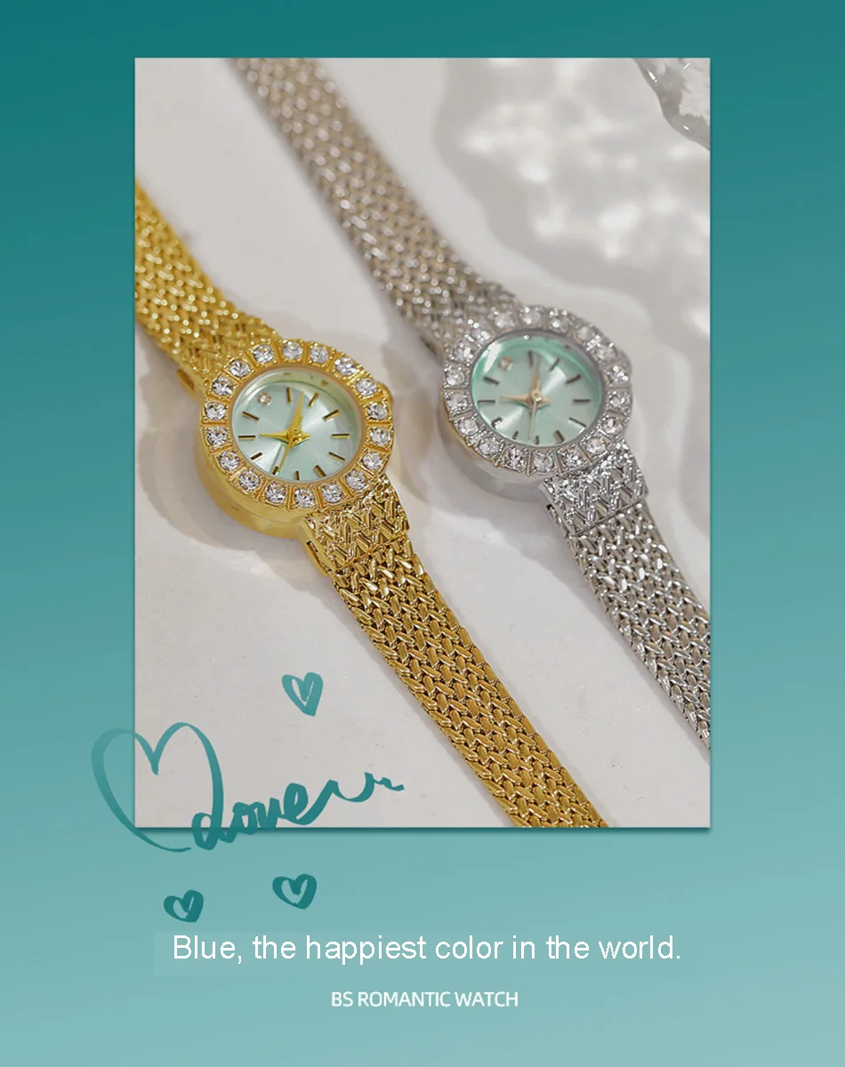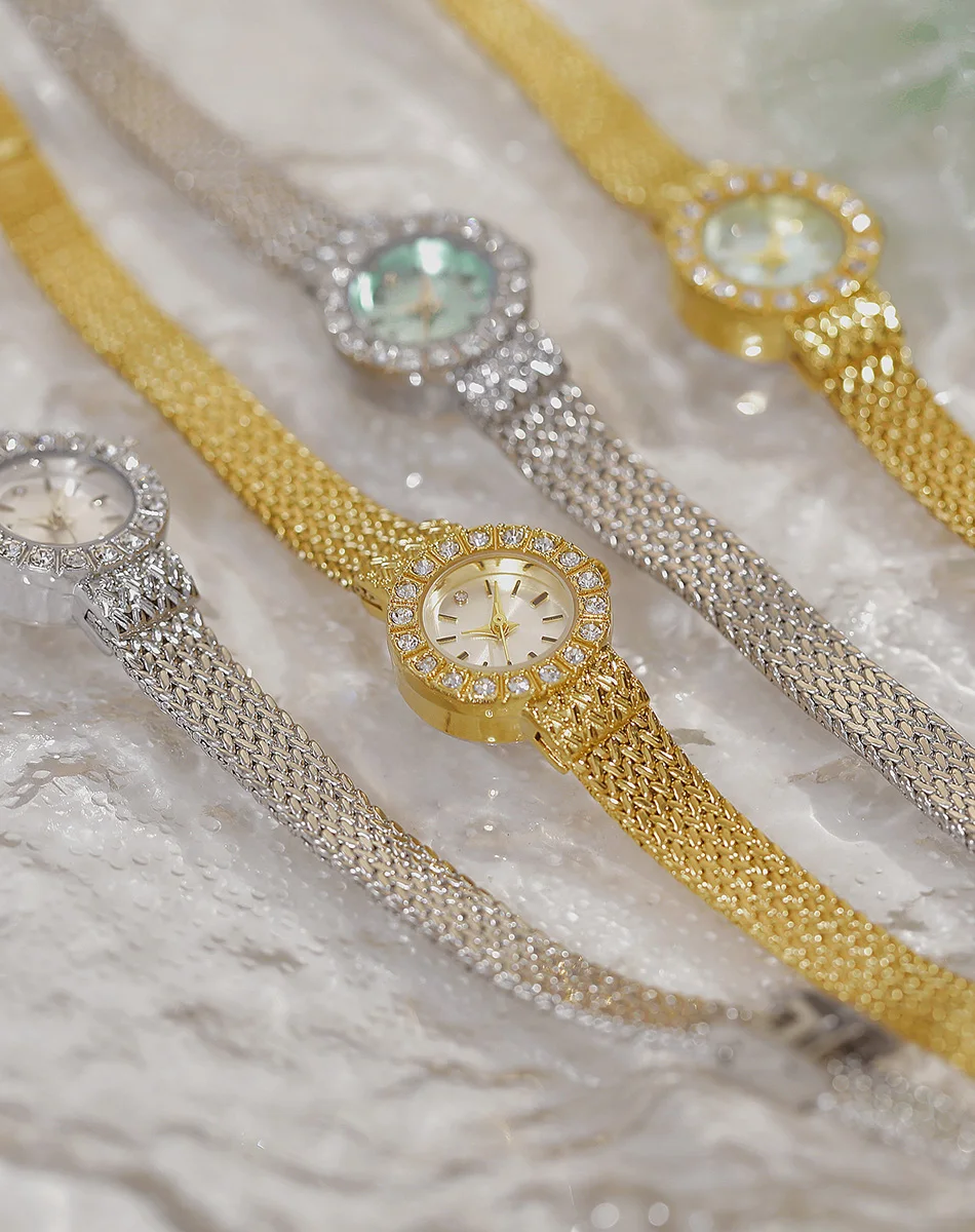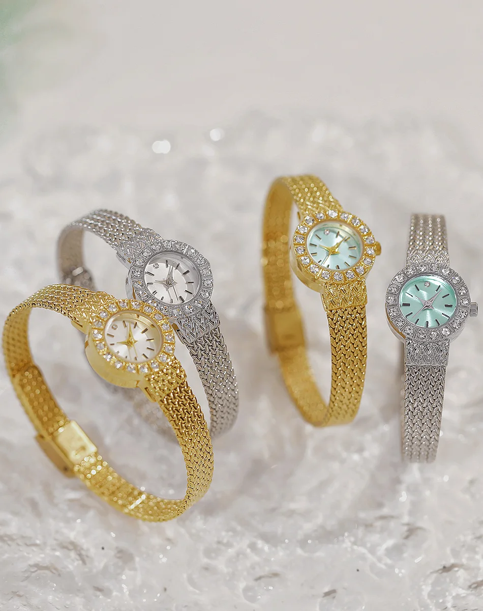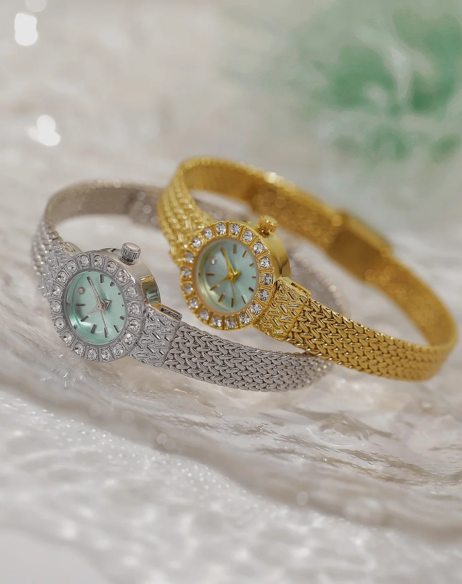 Women’s Vintage Green Diamond Dial Quartz Bracelet Watch
