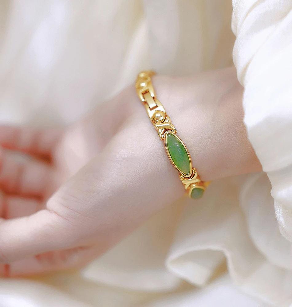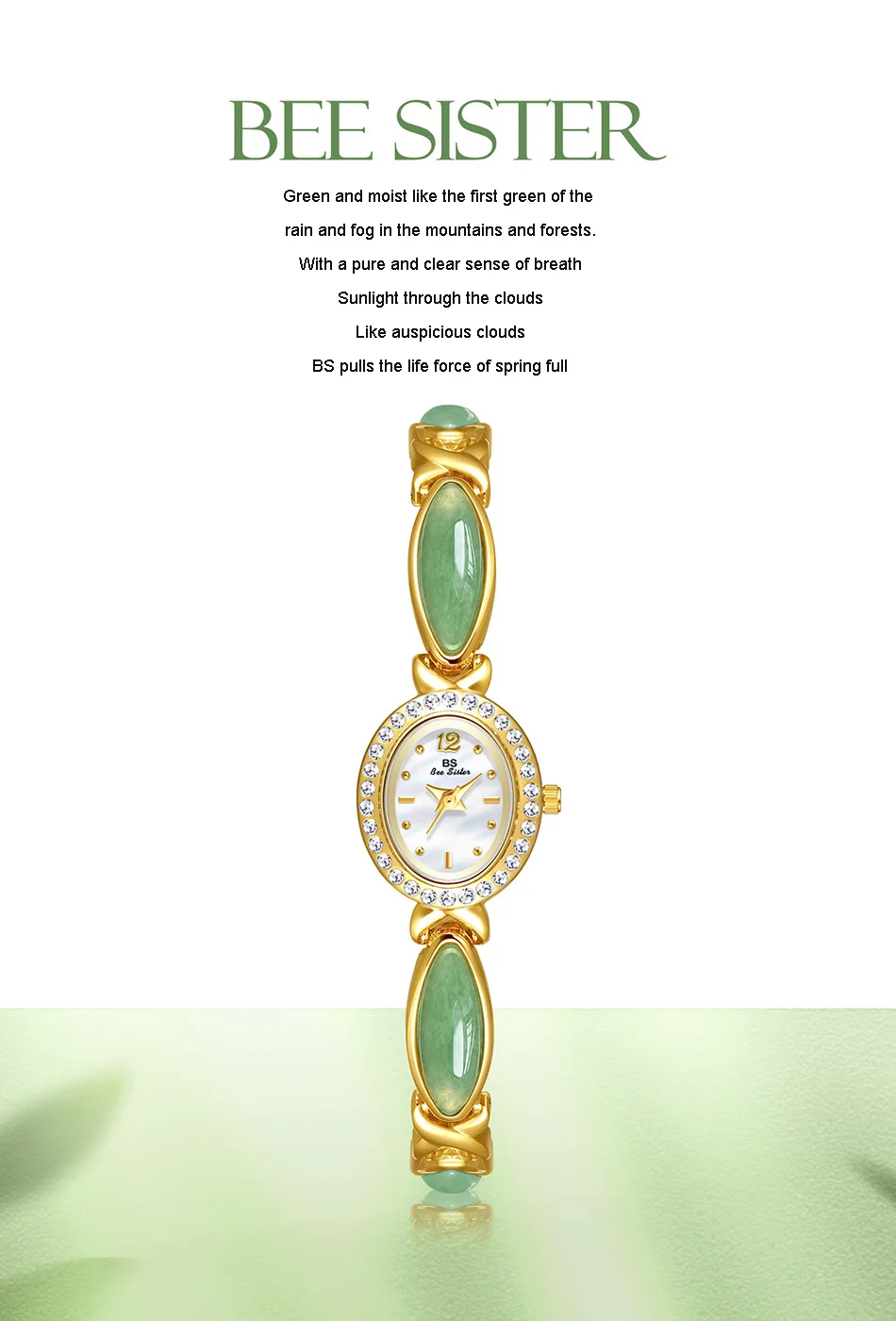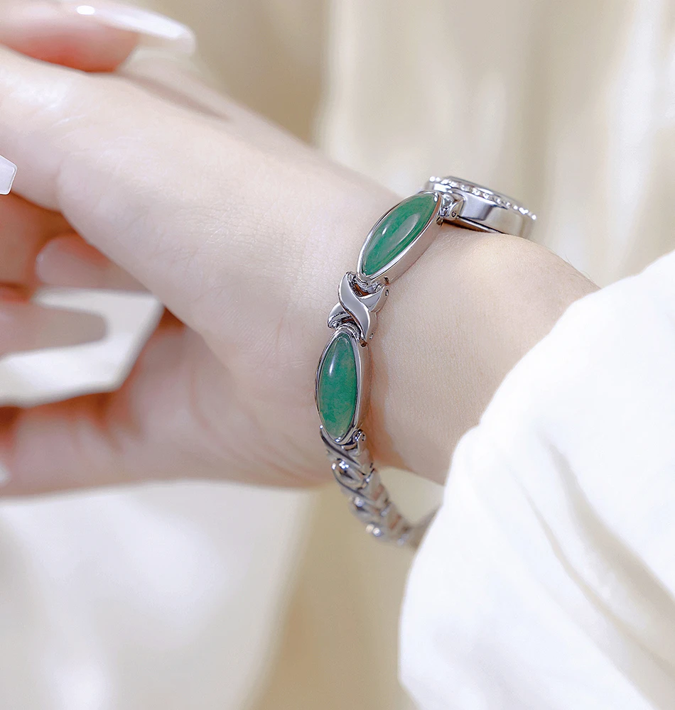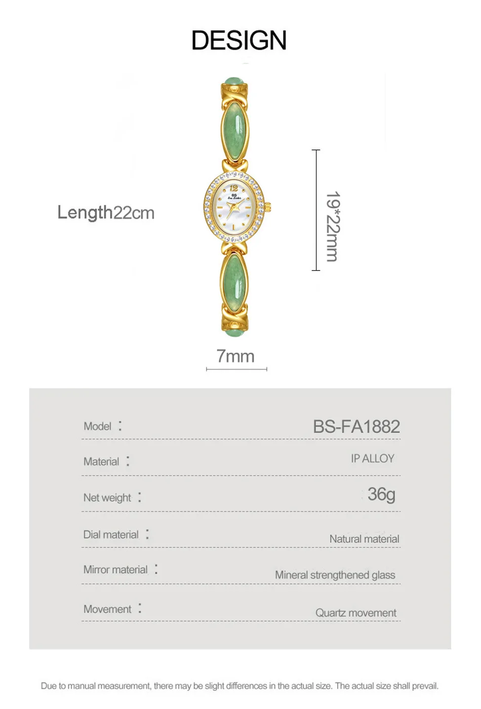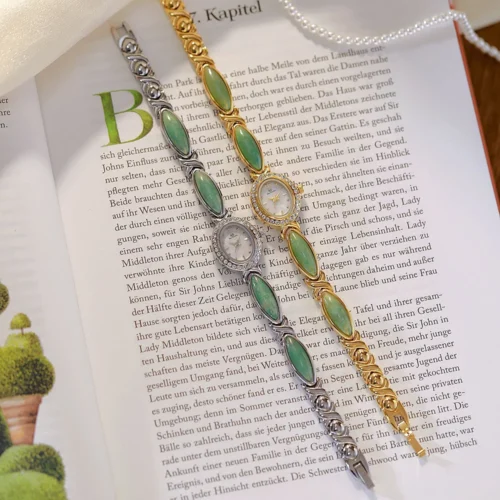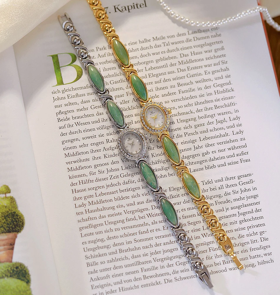 Women’s Vintage Jade Quartz Watch – Small Oval Diamond Dial & Waterproof Bracelet