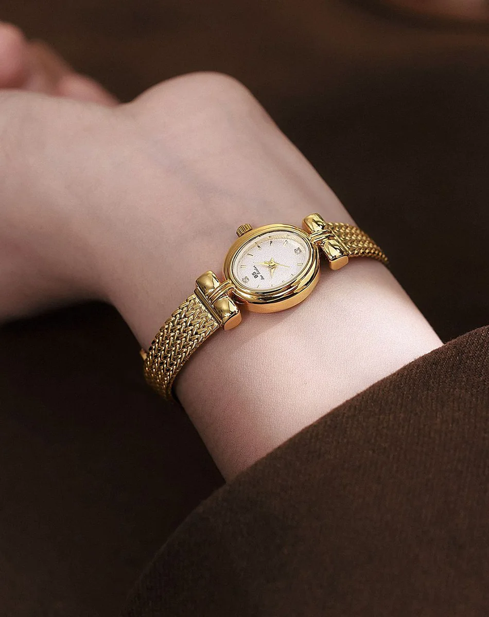 Women’s Vintage Waterproof Oval Quartz Watch with Golden Wheat Bracelet