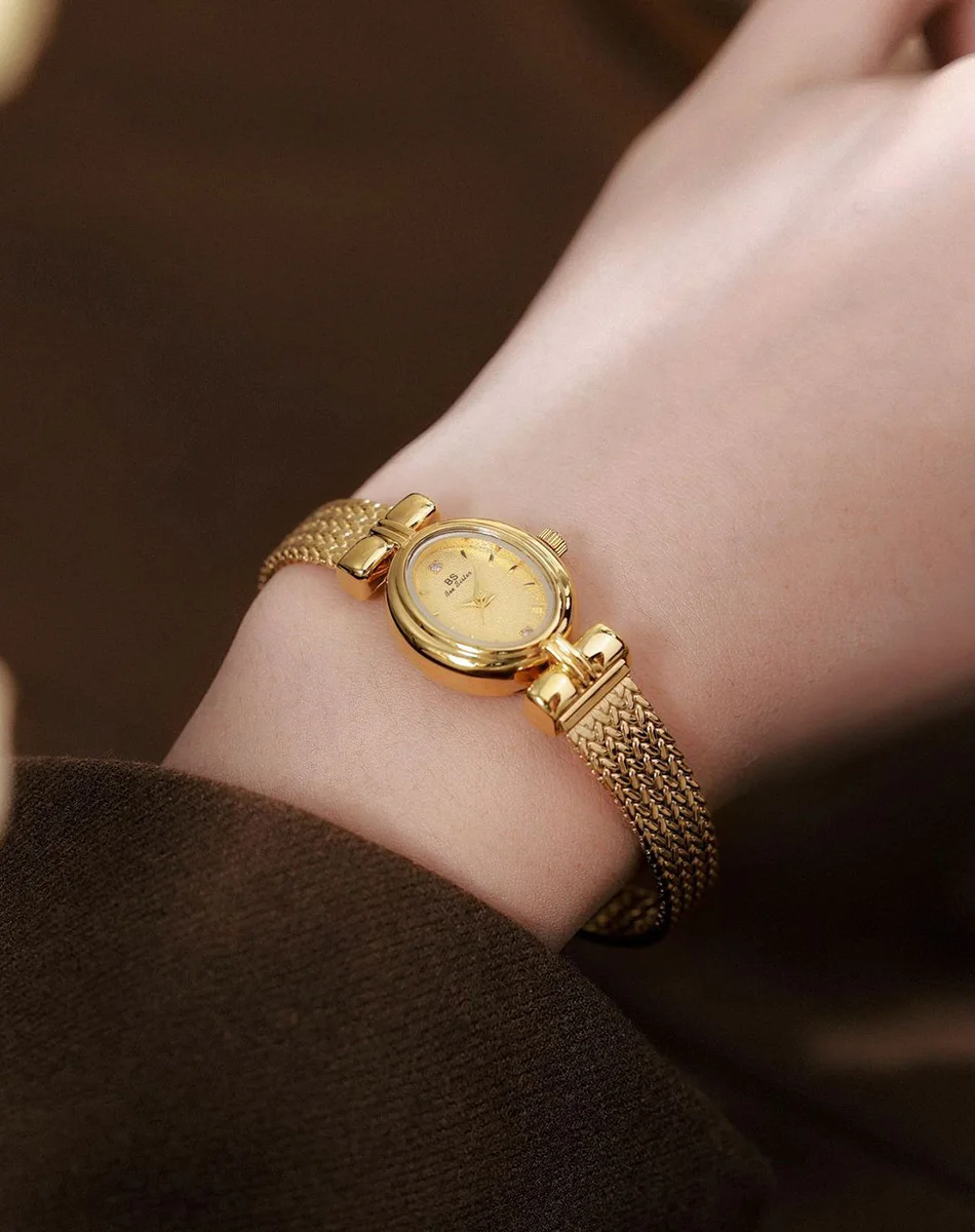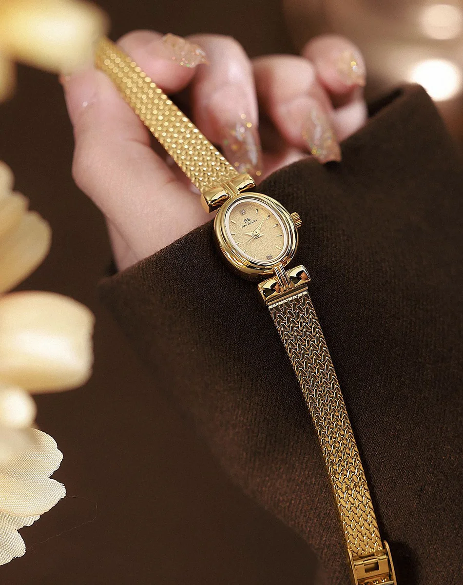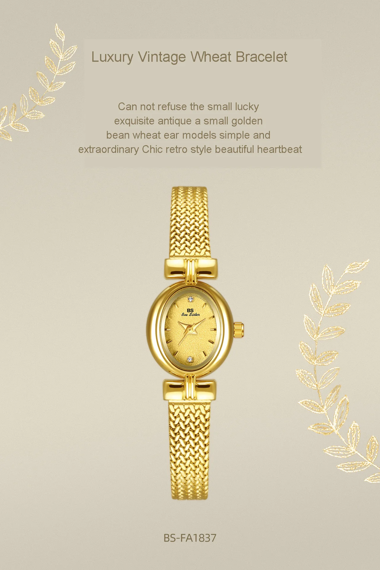 Women’s Watches Luxury Brand Oval Quartz Watch Gifts For Women Vintage Elegant Waterproof Golden Wheat Bracelet Wristwatch