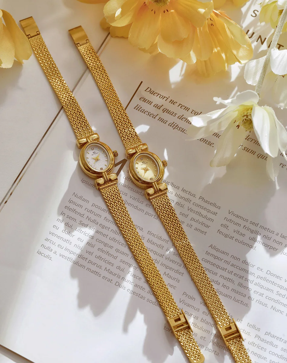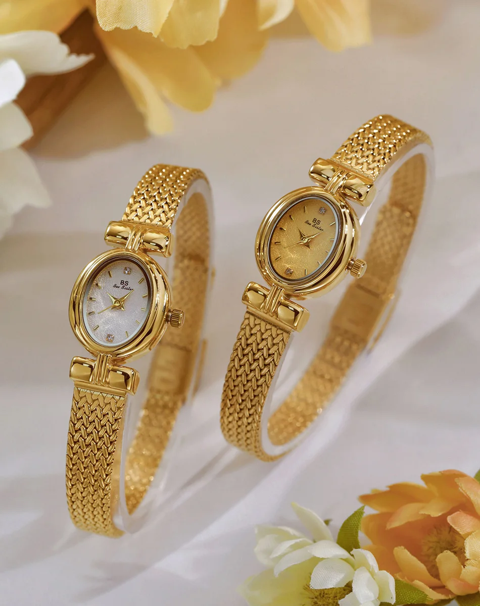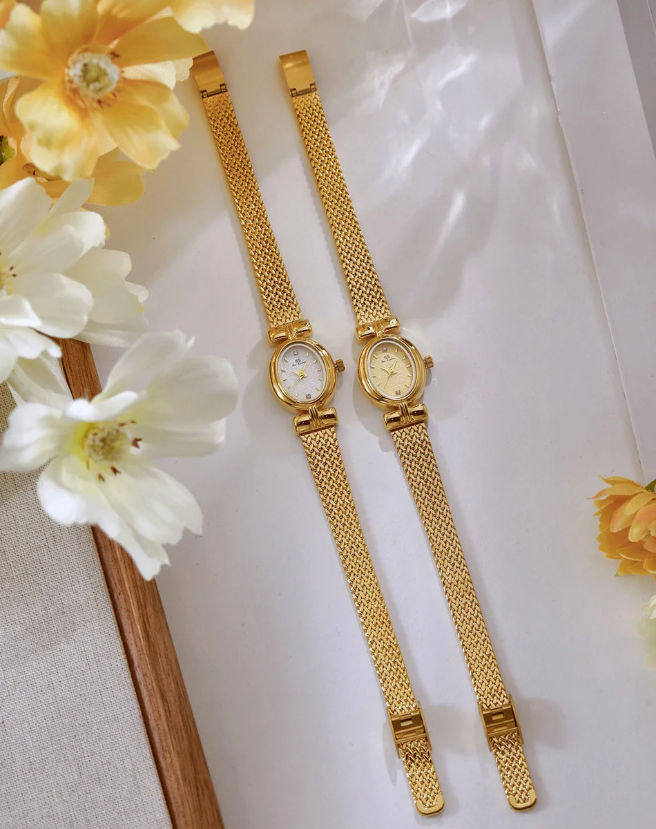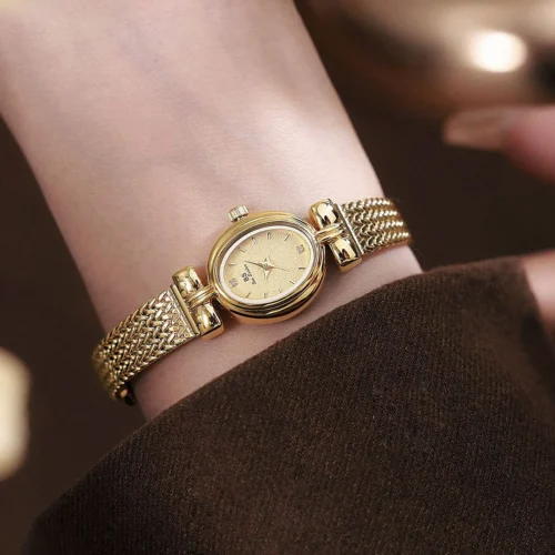 Women’s Watches Luxury Brand Oval Quartz Watch Gifts For Women Vintage Elegant Waterproof Golden Wheat Bracelet Wristwatch