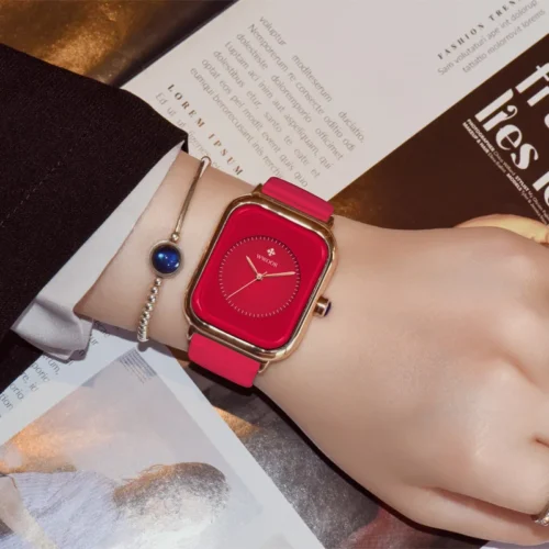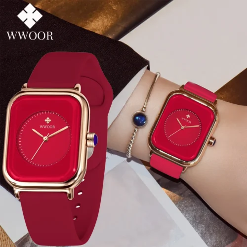 WWOOR Luxury Red Square Watch for Women – Elegant Quartz Dress Wristwatch, Simple Female Clock