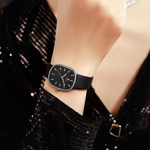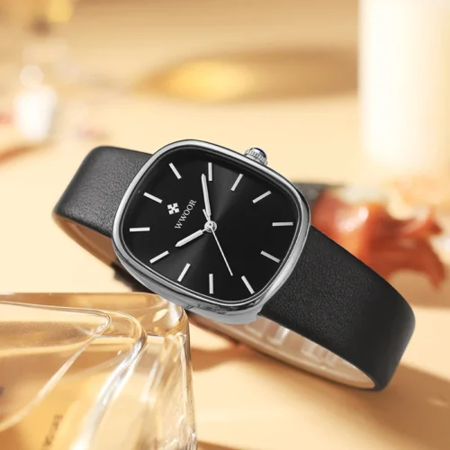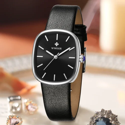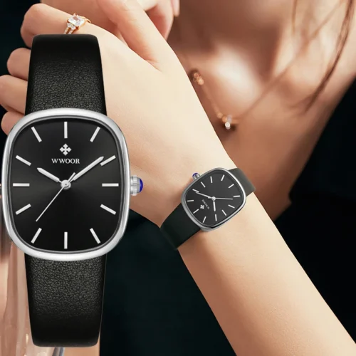 WWOOR Luxury Women’s Black Leather Watch – Elegant Dress Quartz Bracelet