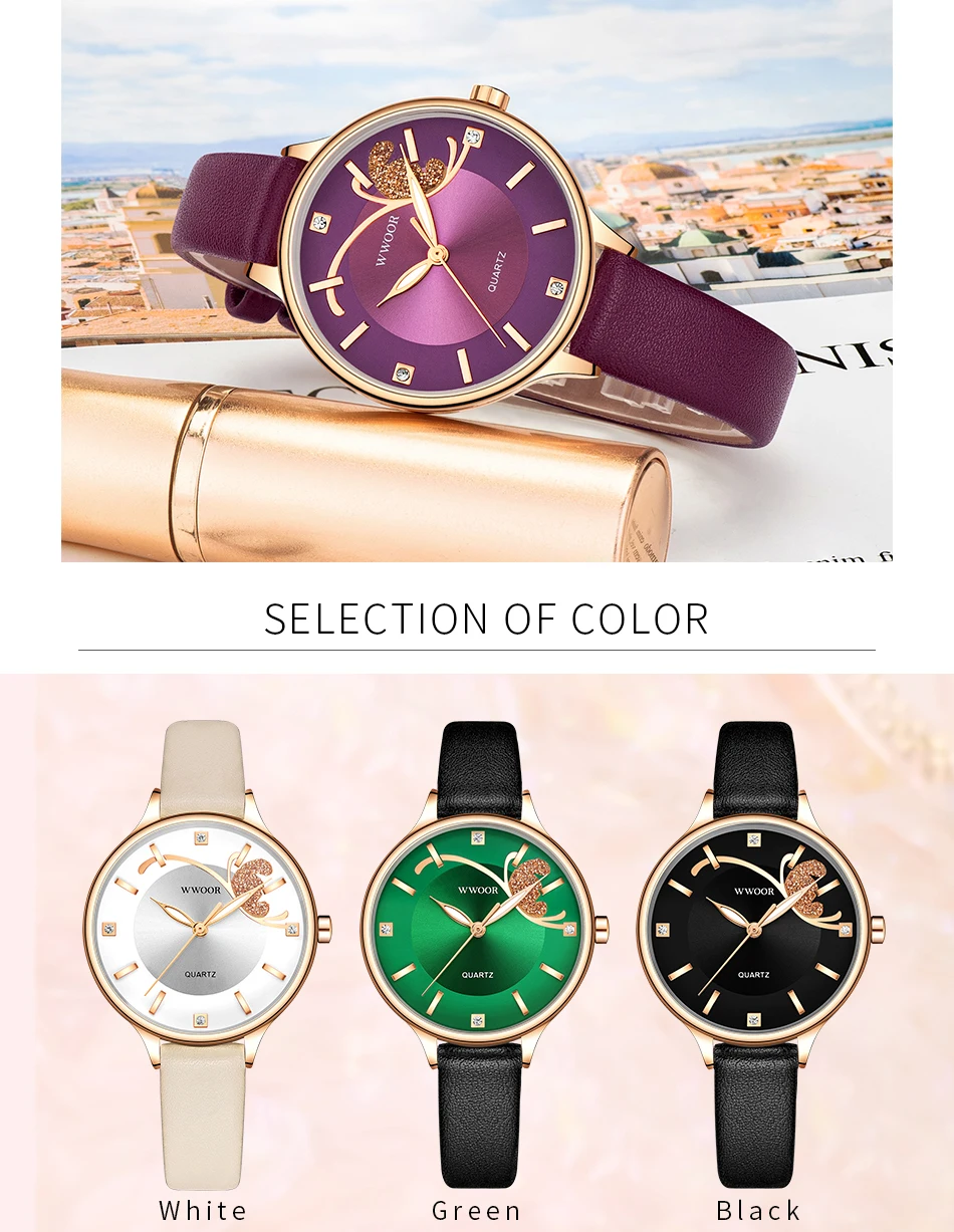 WWOOR Women’s Diamond Quartz Watch – Fashion Designer Dress Wristwatch with Japanese Movement