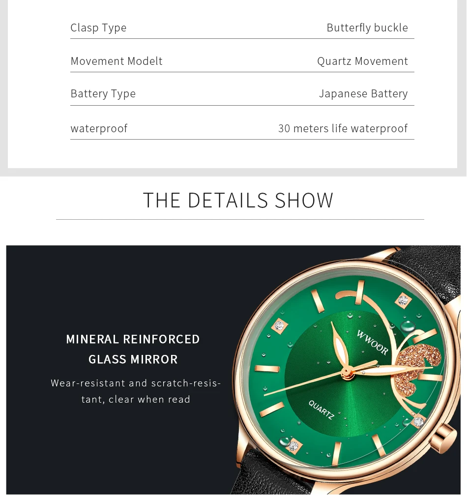 Be the first to review “WWOOR Women’s Diamond Quartz Watch – Fashion Designer Dress Wristwatch with Japanese Movement” Cancel reply